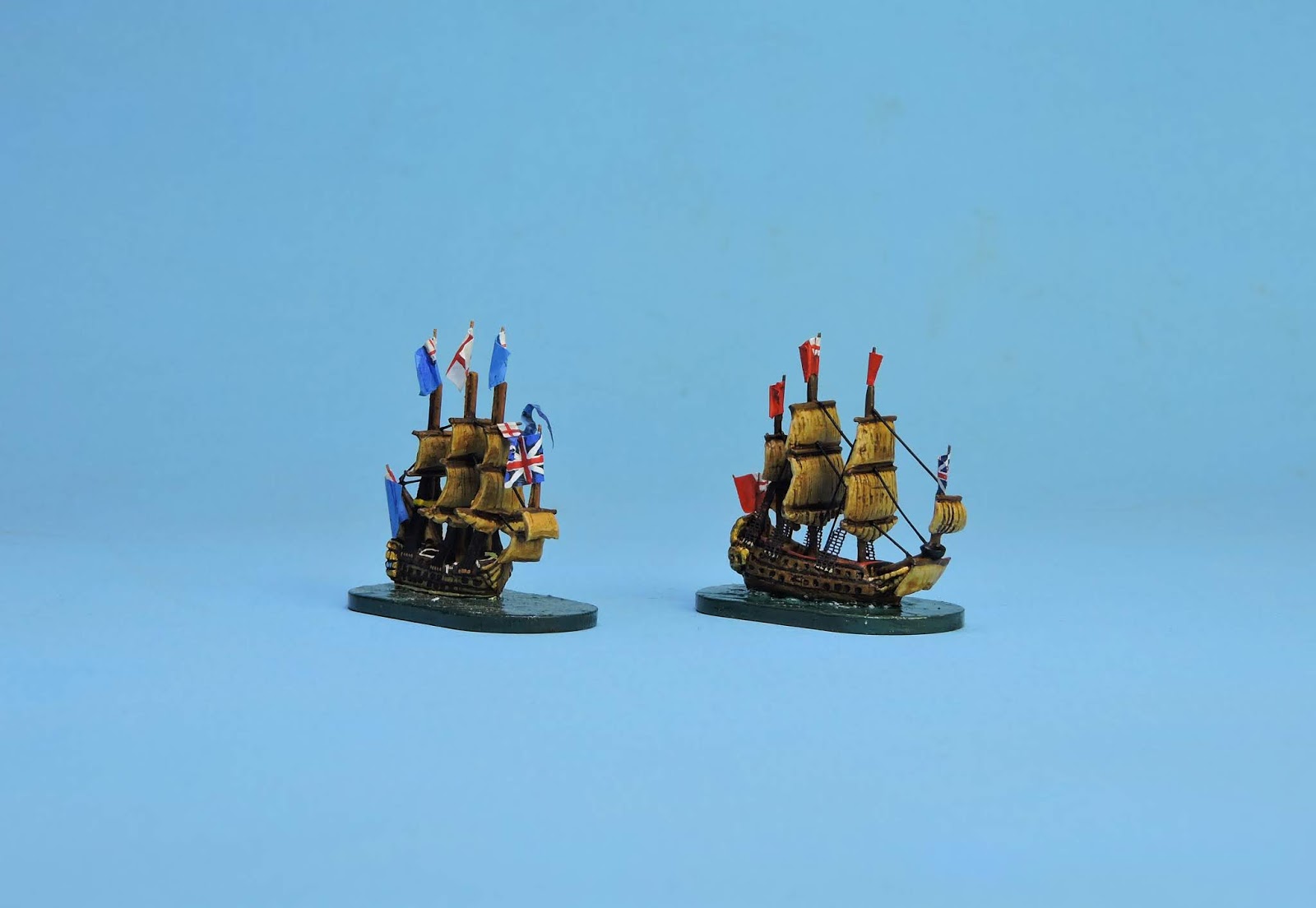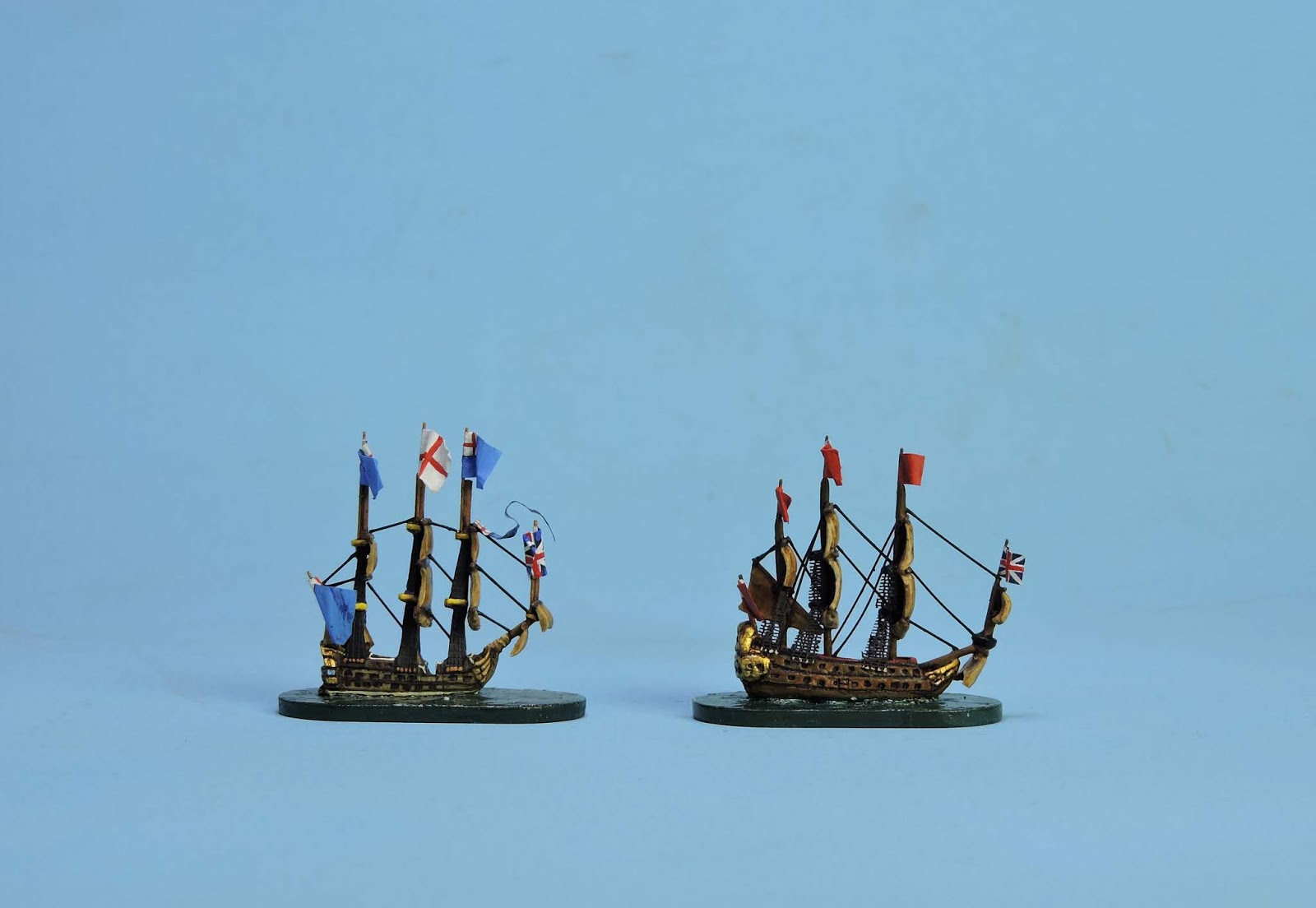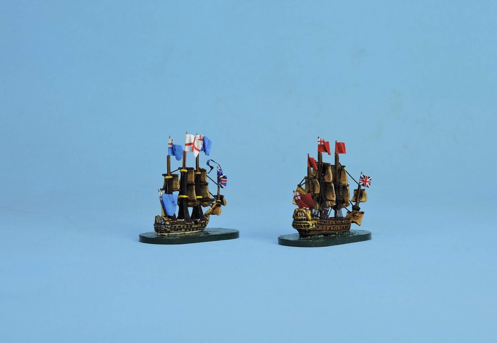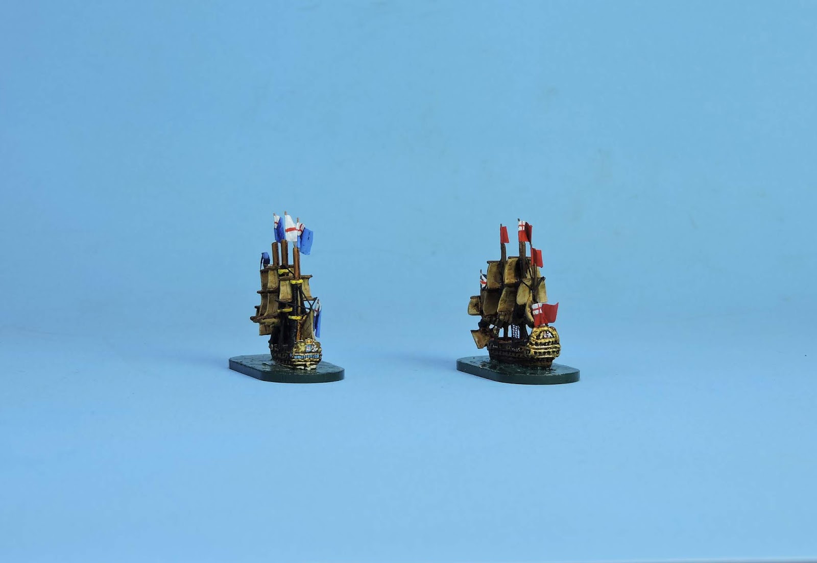 Phil who sculpts Spithead's ships make much of the accuracy of the sterns of both English and Dutch vessels. This is with some justification. The sterns are distinct, definitely 'in the style of' and easily distinguishable from each other. This cannot be said for the TD ships many of which I have filed flat and repainted to create the distinction between fleets.