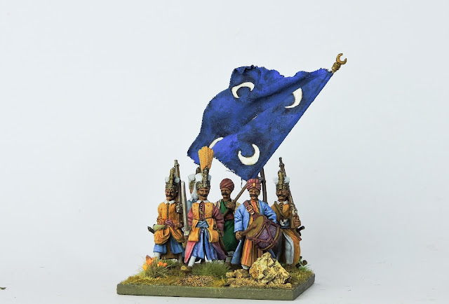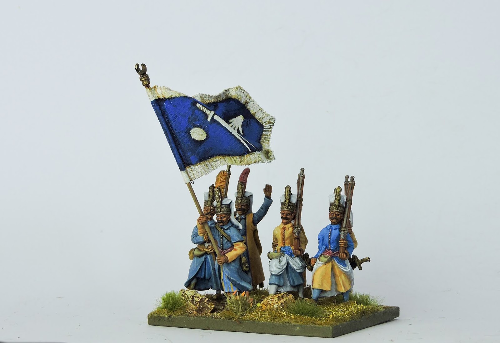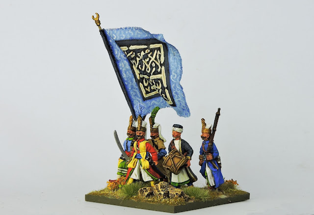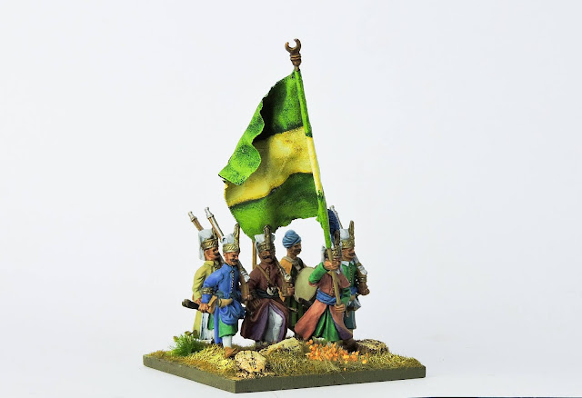 Well, this is somewhat of a bling post but I just enjoyed myself so much doing these flags that I thought I would share. I decided that any Ottoman unit I got the chance to paint and/or base was going to get one of my old style linen flags.