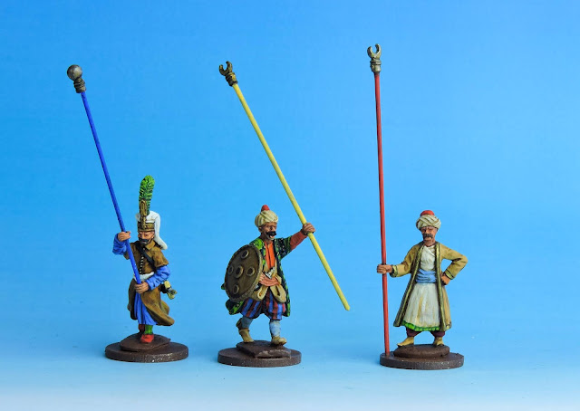 The campaign dress Janissaries are done in deliberately mixed uniforms as there is no consensus, even for full dress units, that the men wore the same colours.