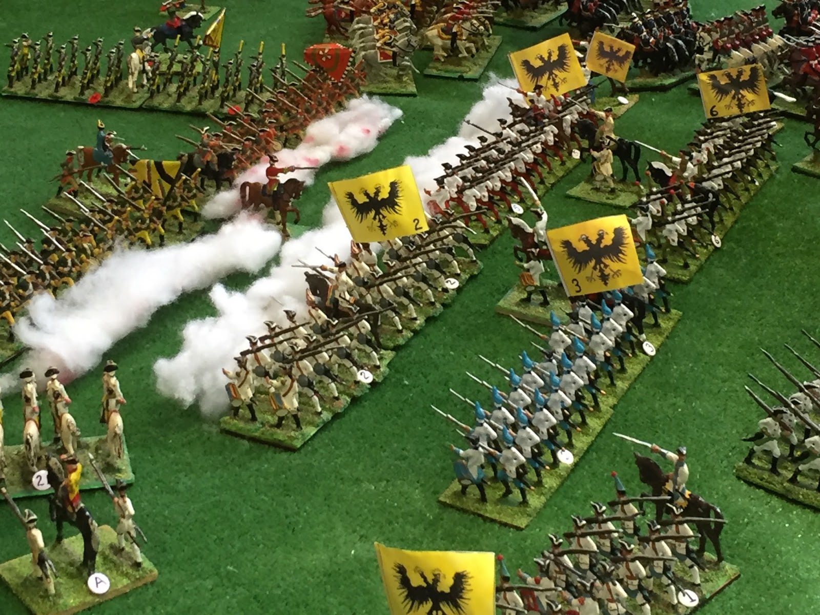 One of my occasional senior moments resulted in the Russian Army taking the field sans picque et drapeaux! I added an extra two feet of the table length from the Hamburg iteration of the game and this combination of extra space and the absence of around 50 troops gave the game some breathing space for manoeuvre which worked well in the end.