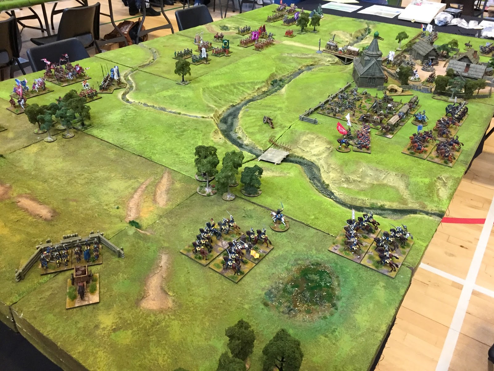 The Carronade show which now rivals/surpasses Claymore as the premier Scottish event has plenty of pluses. Good access for exhibitors and trade, good light especially in the larger gym hall, space, an efficient and helpful hosting club, a good selection of trade and normally, a very good standard of games. This year however there were a couple of chinks in the facade I thought, few if any within the control of F&DWC.