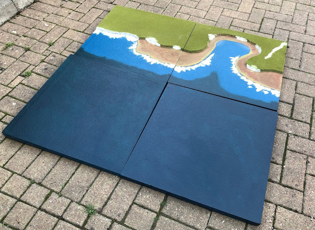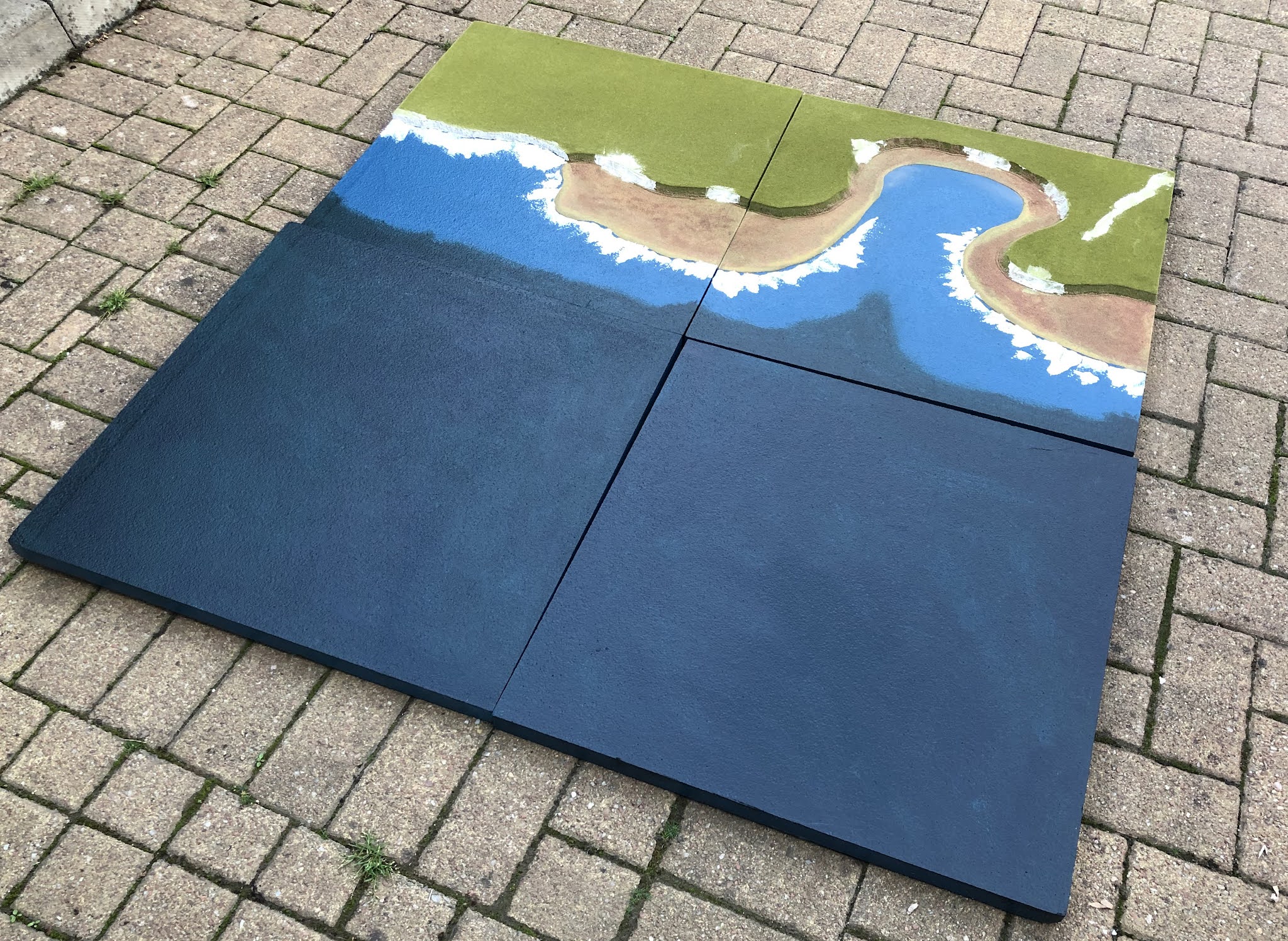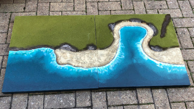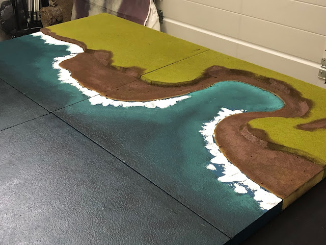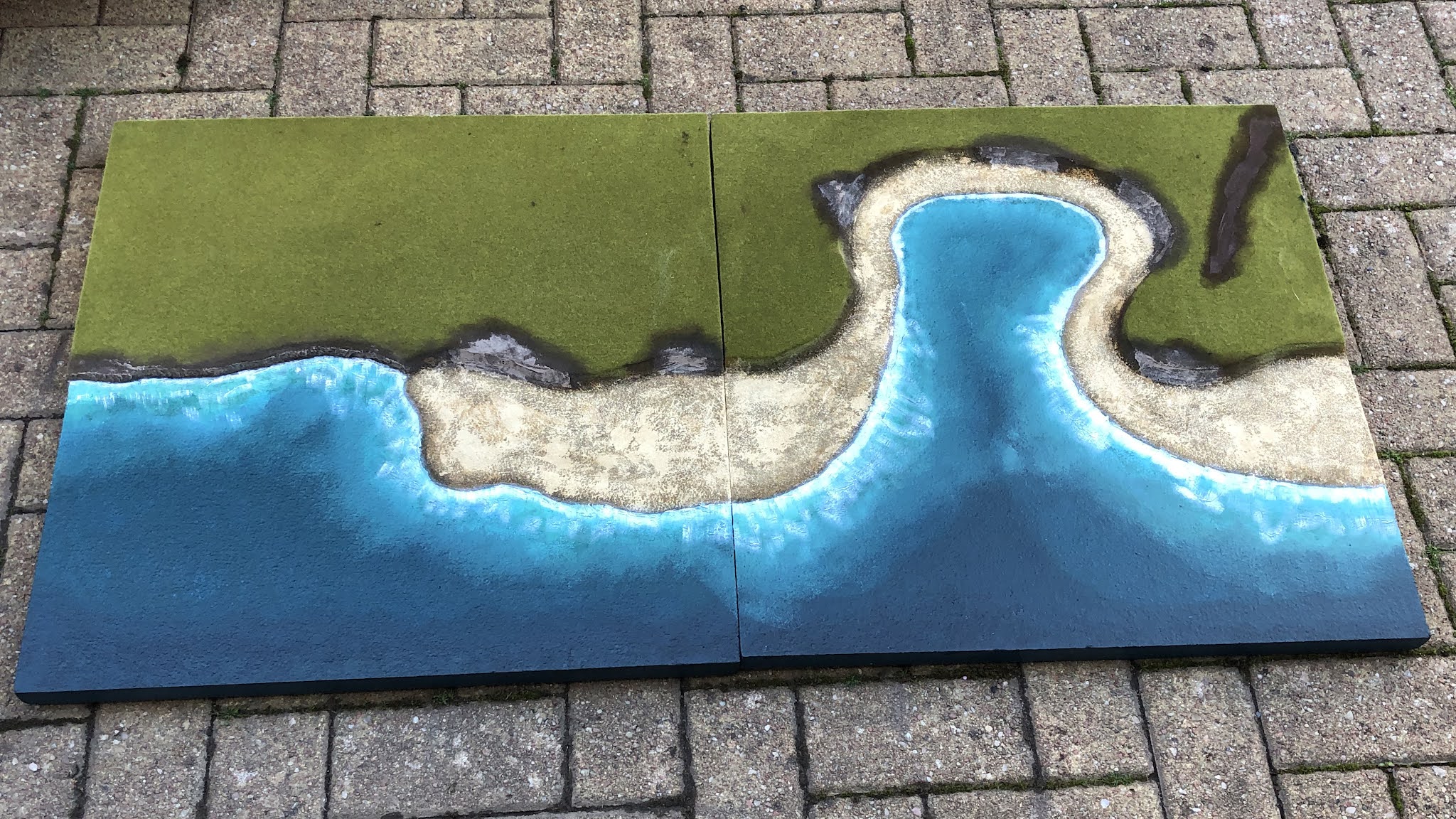 Surf painted and beach coated in Titanium buff. No work yet on terra firma, cliffs completed. |