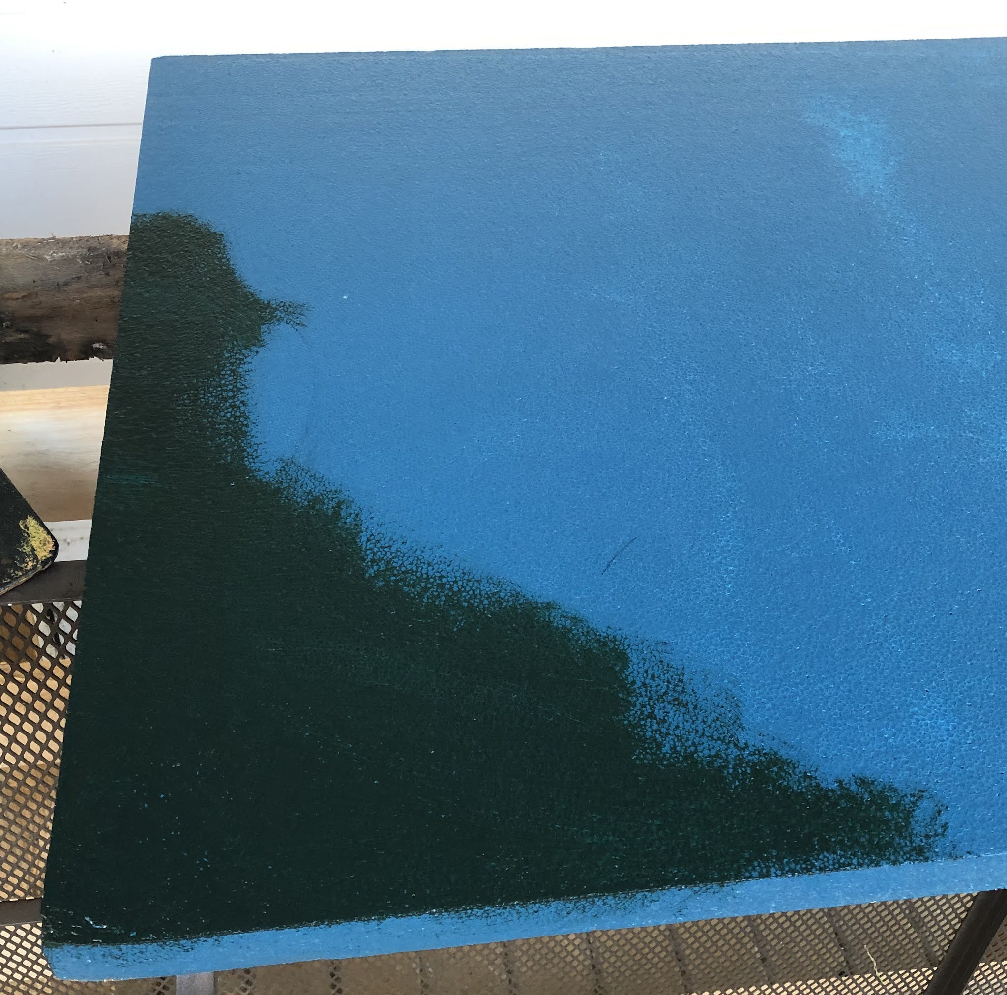 WiP shot - this painting of the sea was done with big brushes/sponges and took about 1 hour |