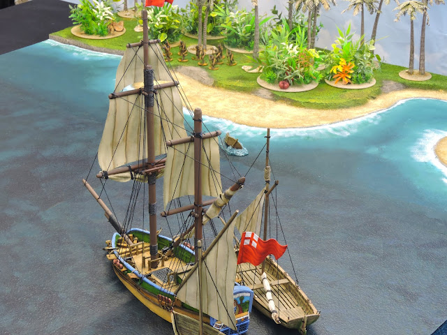 Two set ups show how they suit both 28mm (This scenario is Prince Rupert's adventure rescuing captured crew from his ship Supply near Dakar in 1652 - A Donnybrook game and a 1/1200 Caribbean game with a Treasure fleet at anchor of a Spanish colony about to be subjected to a raid by enemy ships.