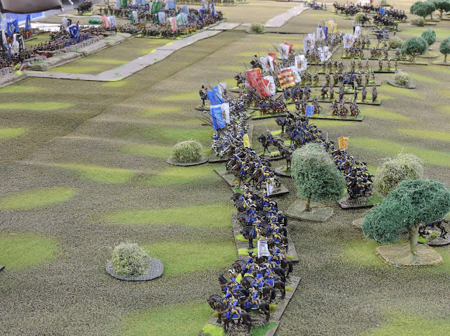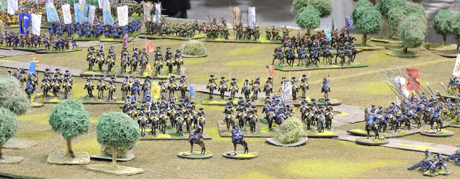 I have been intimately involved with the development as all of the figures used are Warfare Miniatures and there are roughly 2,500 plus about 400 horses here! I counted 'em, Jon painted 'em and Diane built the terrain!