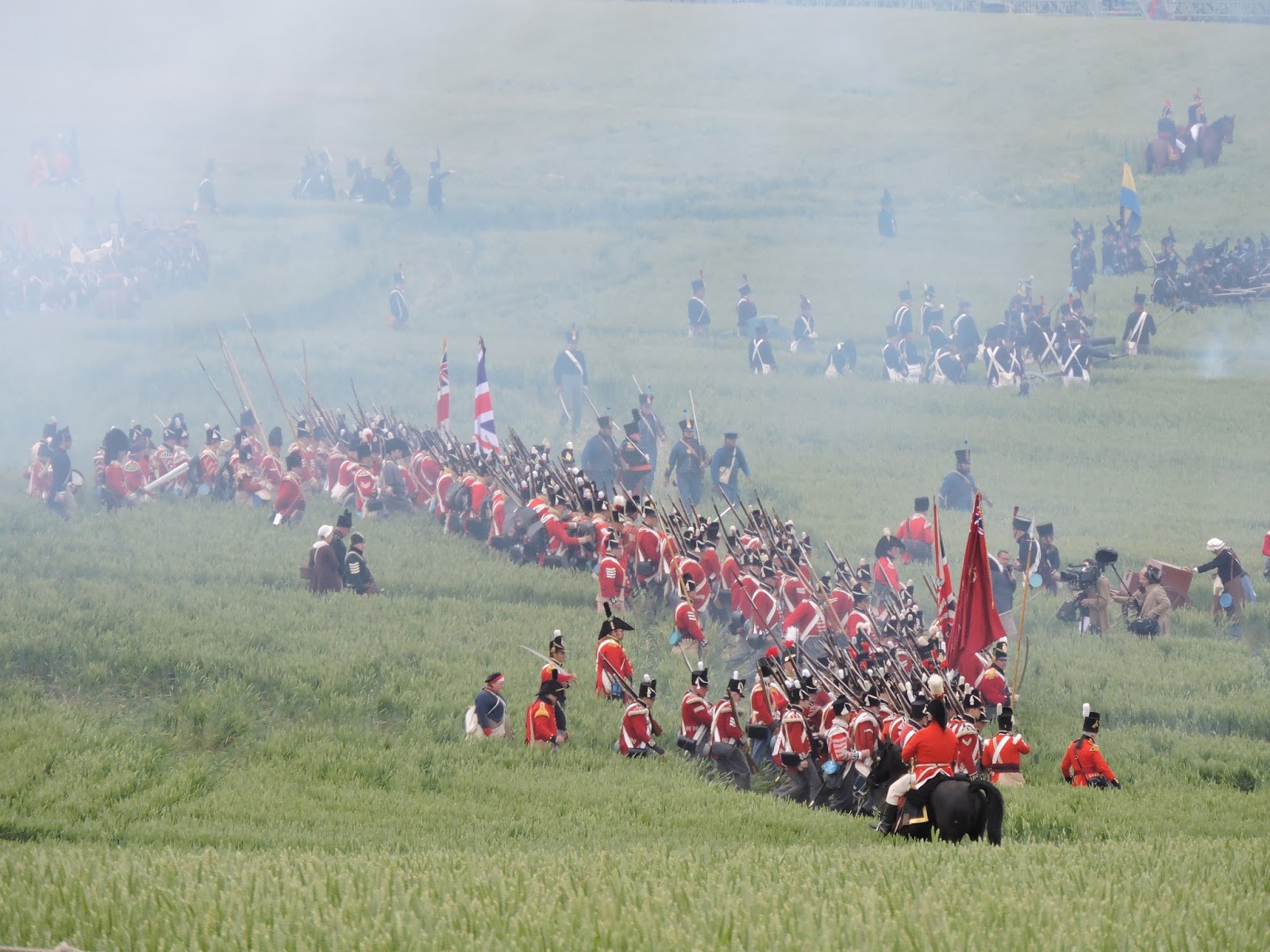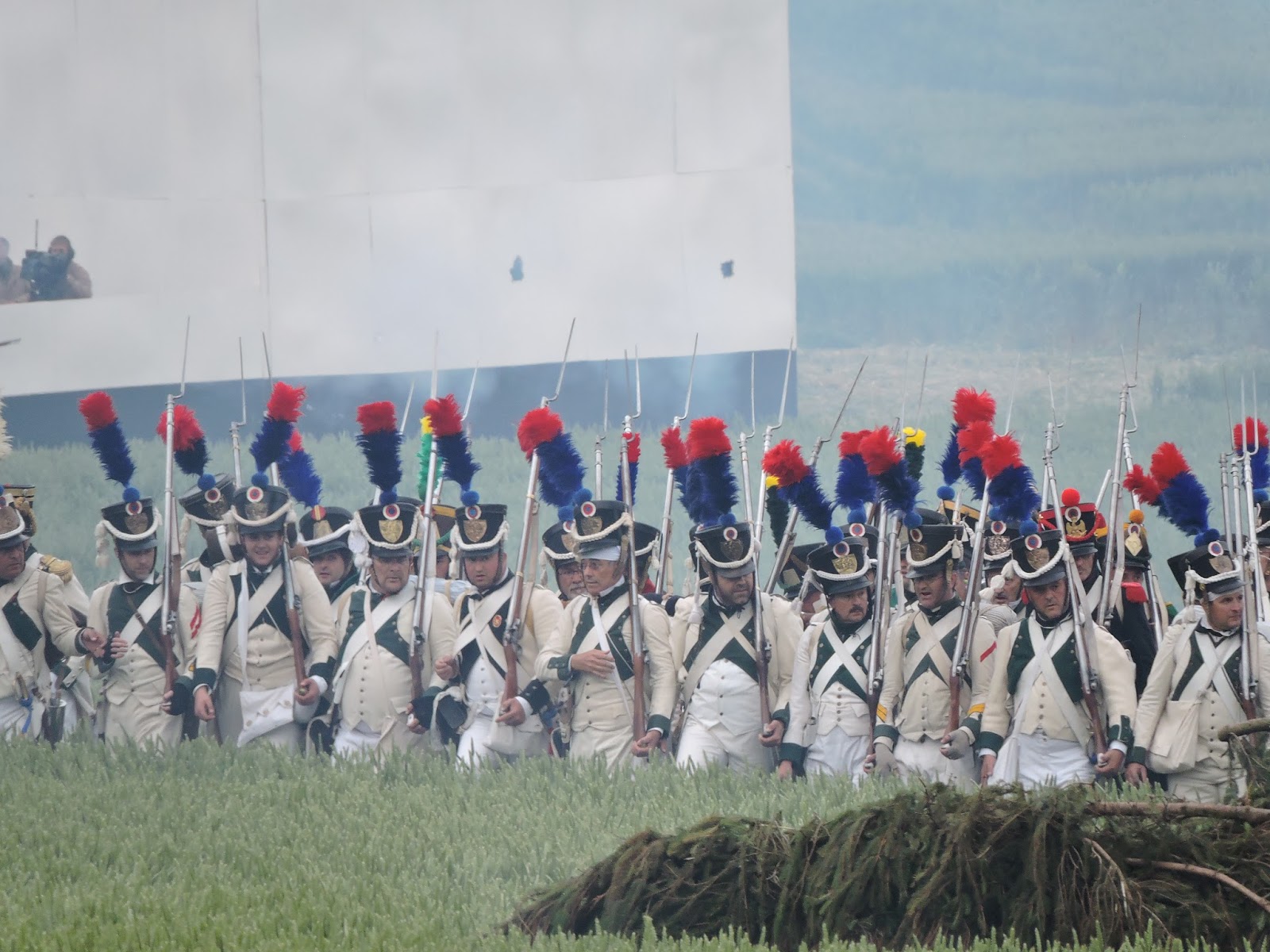 Effectively about one sixth to an eighth of the total ground area of the battlefield and with about 5% of the actual troops involved. Estimates were 7,000 re enactors. Lots of Napoleonic groups were roped in. I saw Swedish, Finish, Westphalian, Italian, Austrian, Swiss units plus 60th Rifles etc.