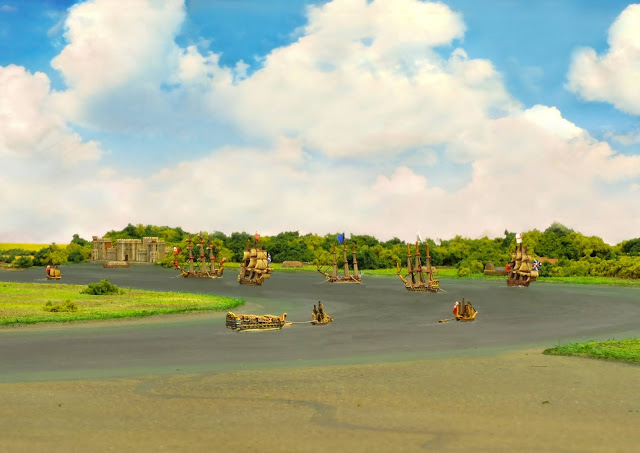 upriver and beyond the arc of the English guns. As this nail-biting tension