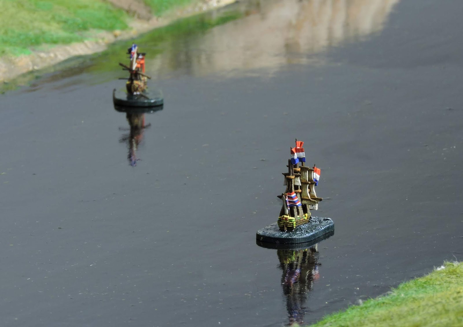 I thought it best to introduce the project with a played out scenario set during the very successful Dutch Raid on the Medway in 1667. The rules are Neil's with some scenario specific tweaking by me. The game took less than an hour and was very enjoyable.