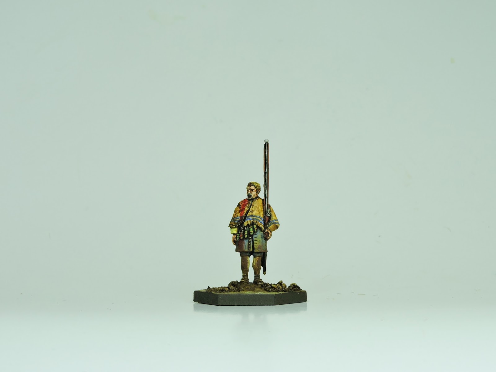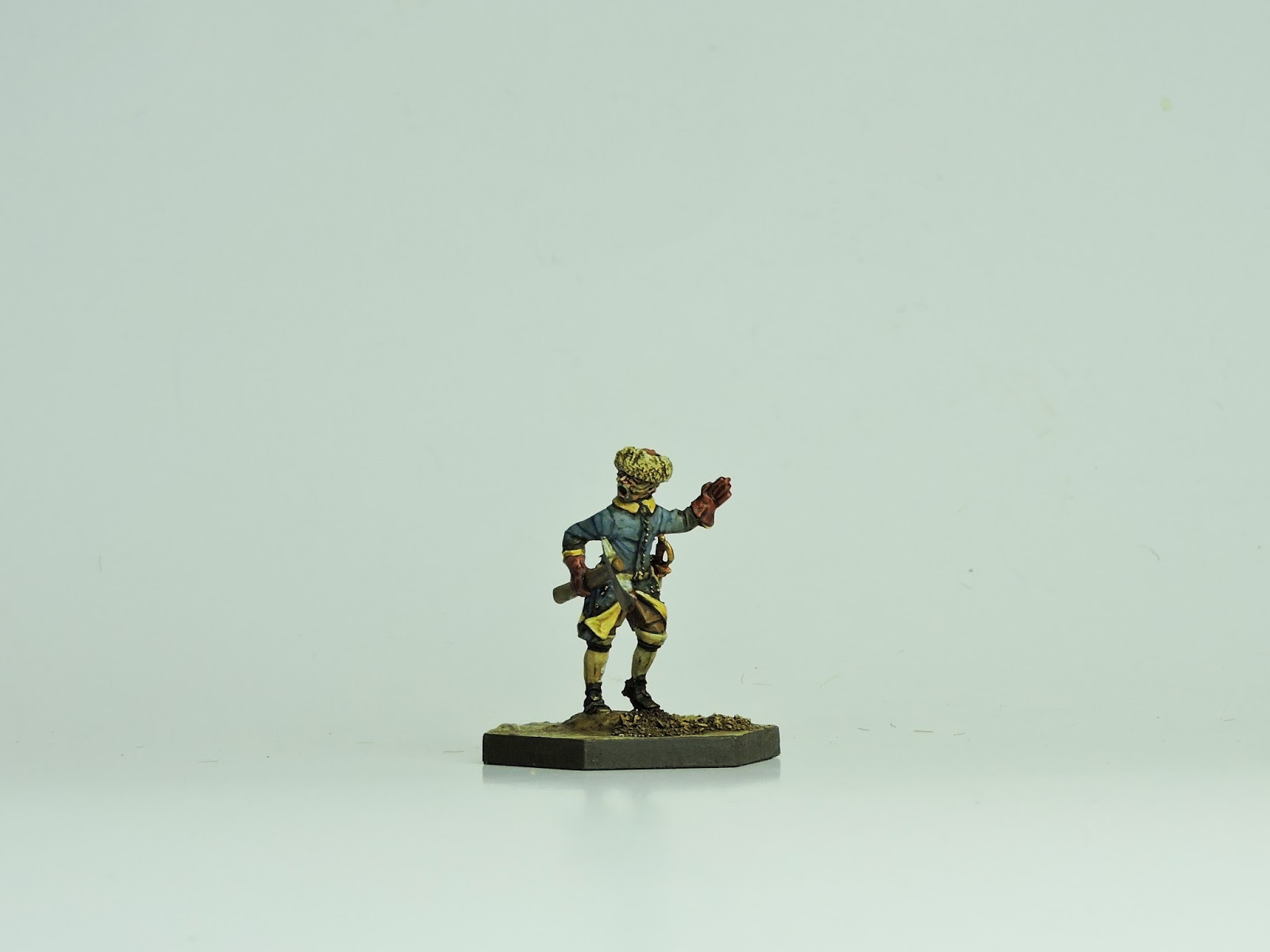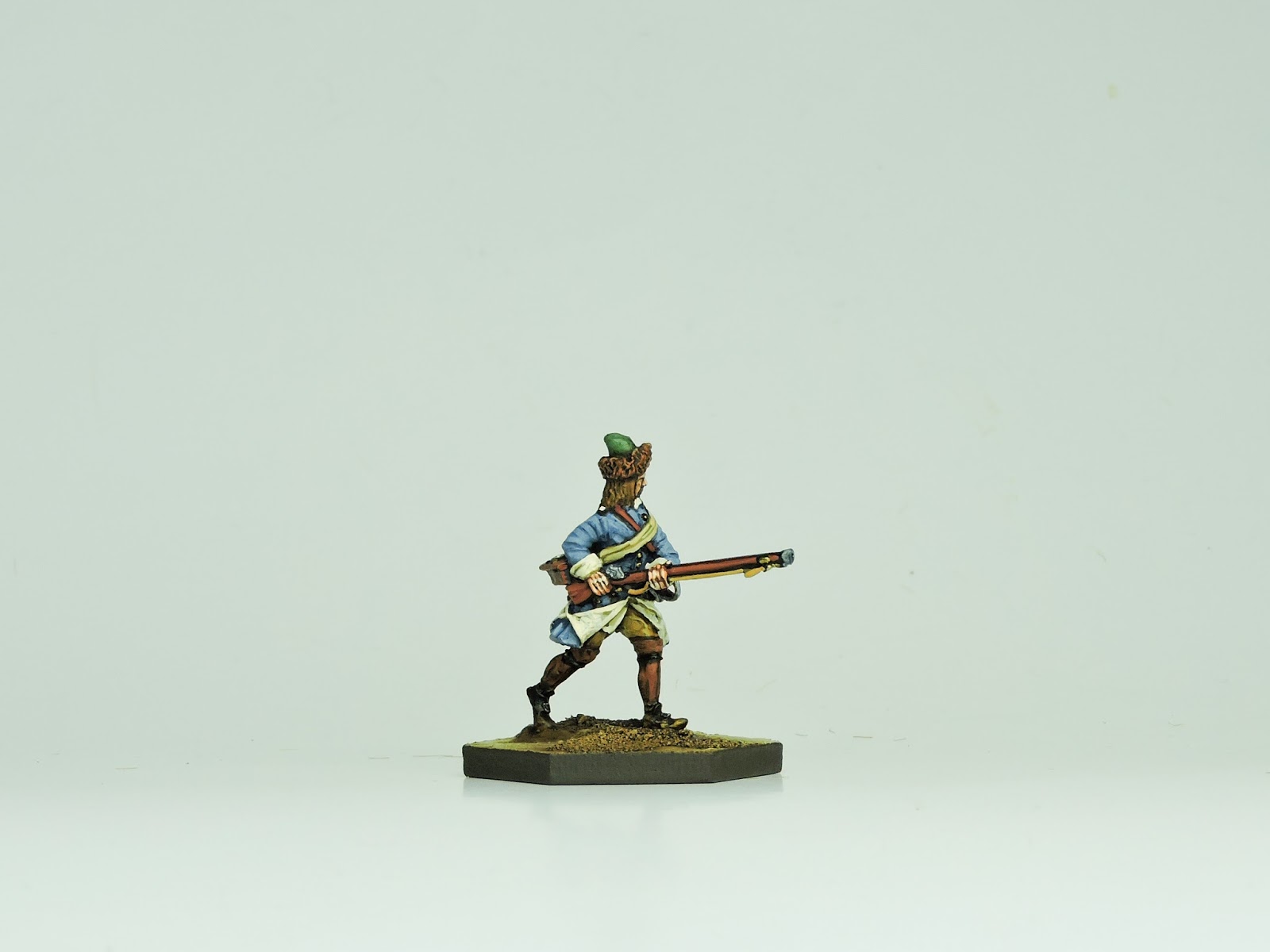 The look I wanted to get with these models was a faded, dirty, washed out effect. They have been in the field for over two years without proper resupply from home. If a parade ground look ever existed in the early 18th century which I doubt, these chaps are as far away from that as is possible. For those interested, a tip I would offer is avoid at all costs using black or white as a finished colour anywhere on the figure. Blacks should be brought up to a dark blu-ish, brown-ish or greyish tone.