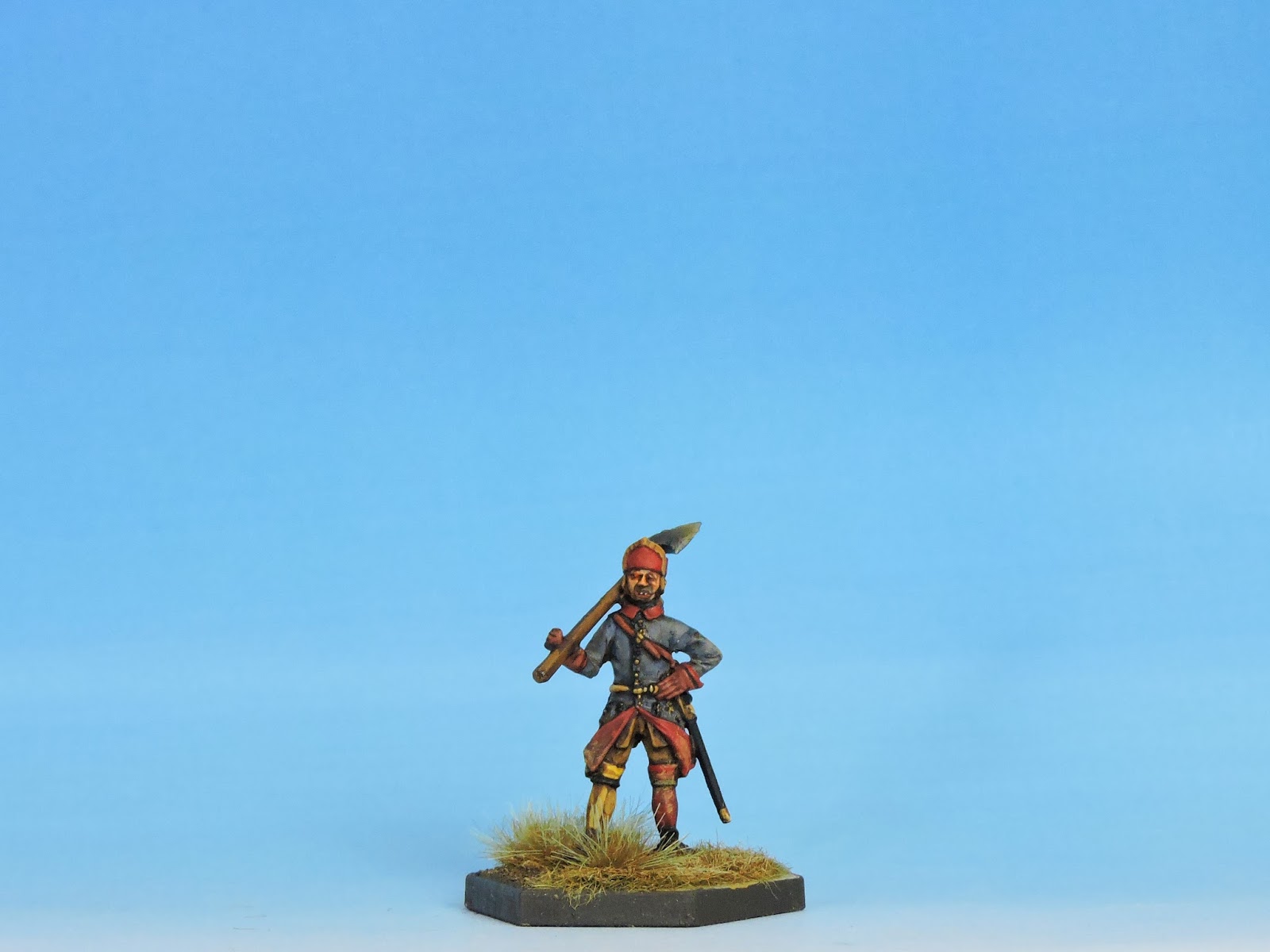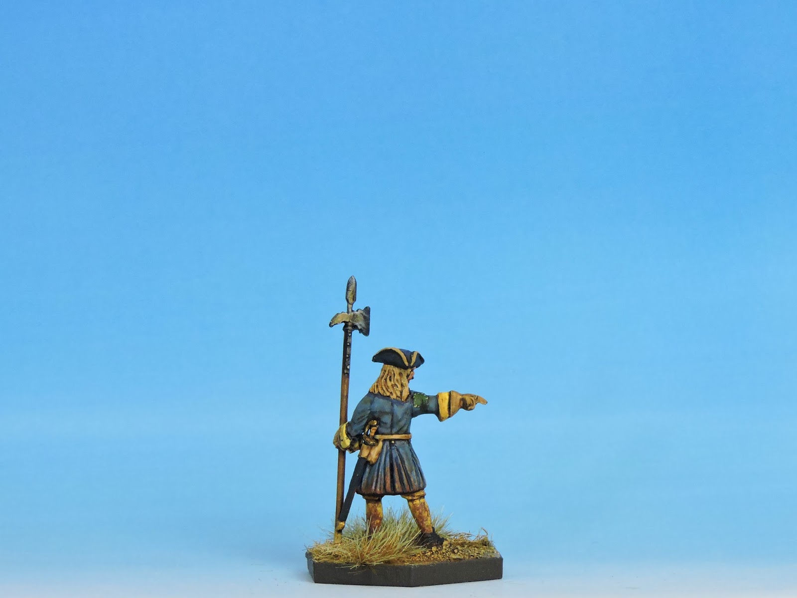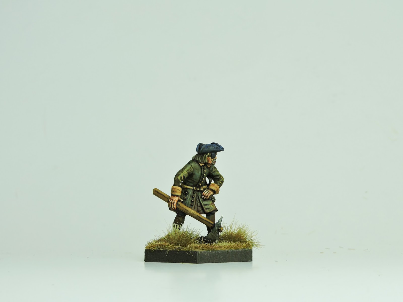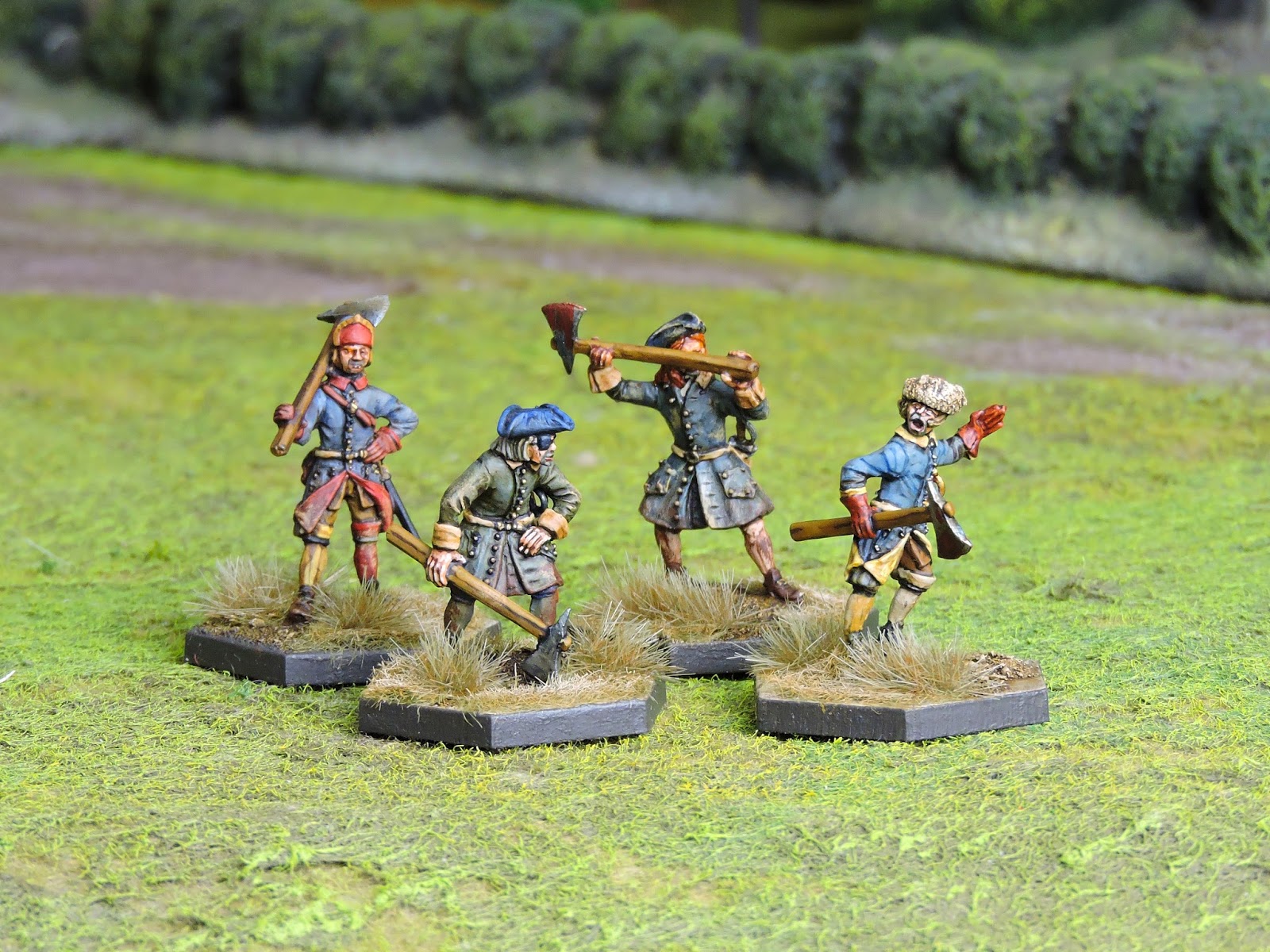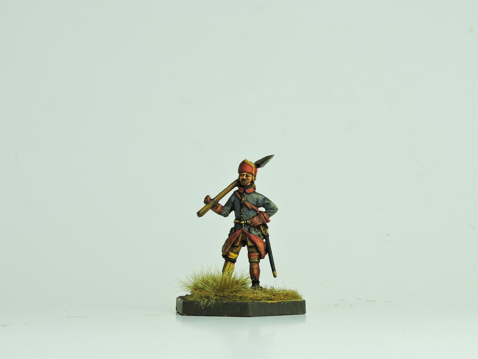 I concluded that an army in tatters with pockets of survivors in small bands would be unlikely to use formed pikes. My pikemen sans pikes are armed with battle axes - well actually, sapper's axes from WLOA926 which is one of the siege packs. I chose to make the sergeant carry a halberd. He is in fact a Russian model.