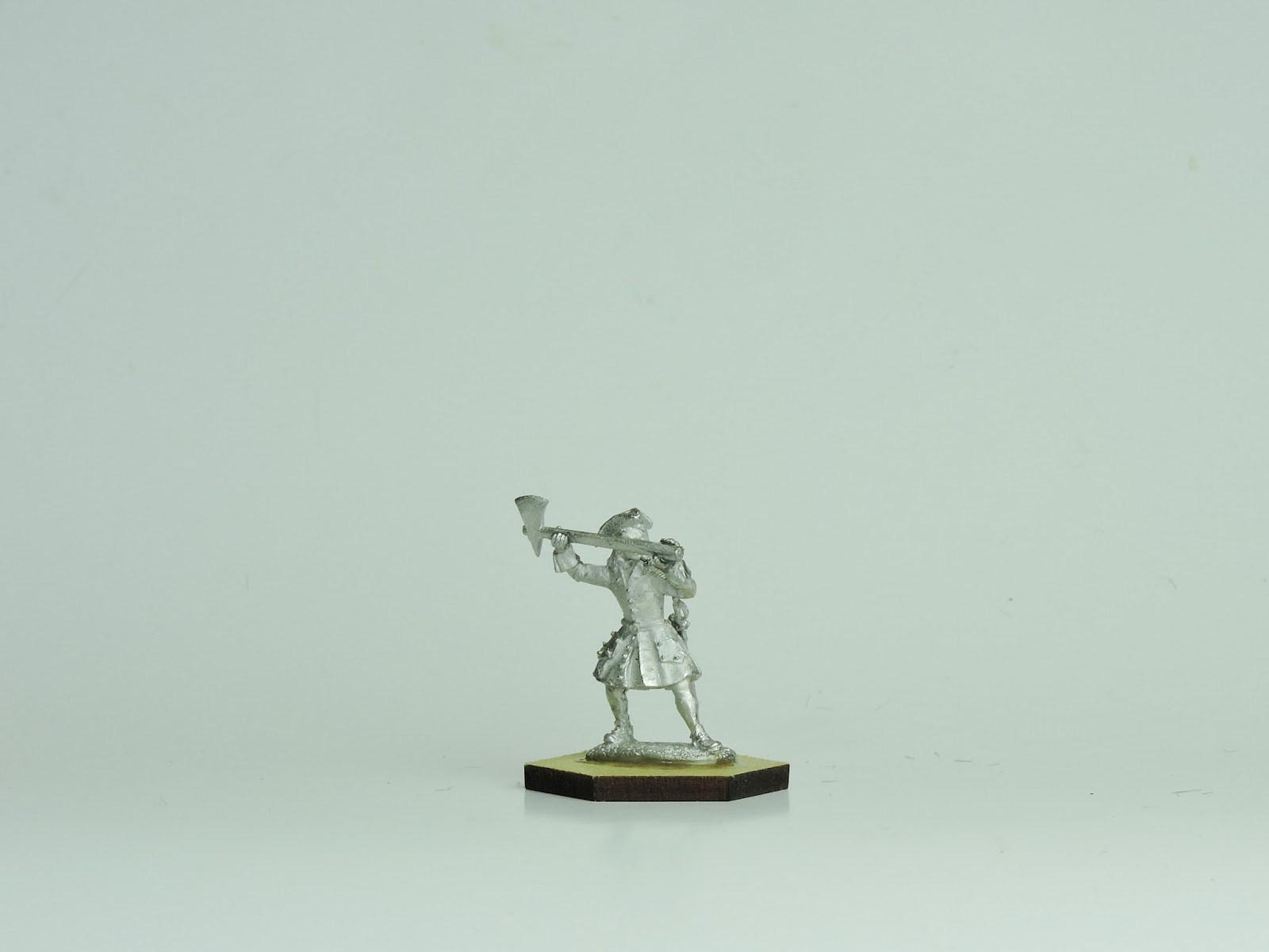 The last axeman is from S4 and wears a piped karpus with his weapon slung confidently over his right shoulder. He clearly knows how to use it. His name is Per Svensson. He wears the uniform of the Narke Varmland regiment. Apart from the addition of the axe there is no conversion work on this figure. He is somewhat motley having have to 'scrounge' equipment and clothes. He wears one red sock and one yellow giving him the appearance of a Landsknecht!