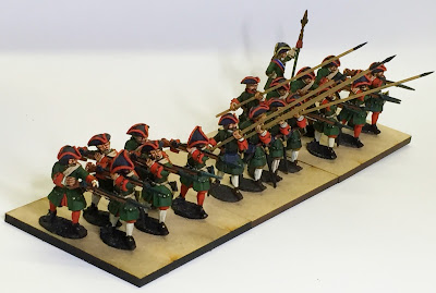 My only regret I have mitigated somewhat. The full animation an visibility of the thrusting model is somewhat hidden by his place in the second rank but, by having him on the end of the row on both flanks his pose is visible plainly.