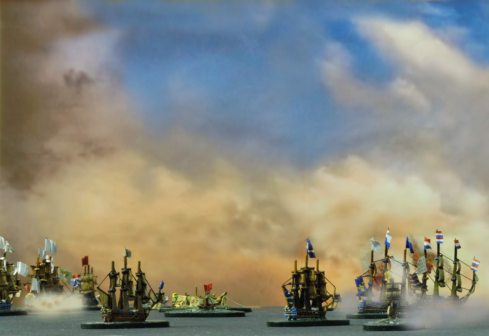 For the game I matched the fleets at around 2575 points give or take. The number of line of battle ships was twelve apiece with the Dutch using one frigate and the Allies two. In addition the Dutch used six fire ships and two hoekers whilst the Allies used four fire ships and two yachts.