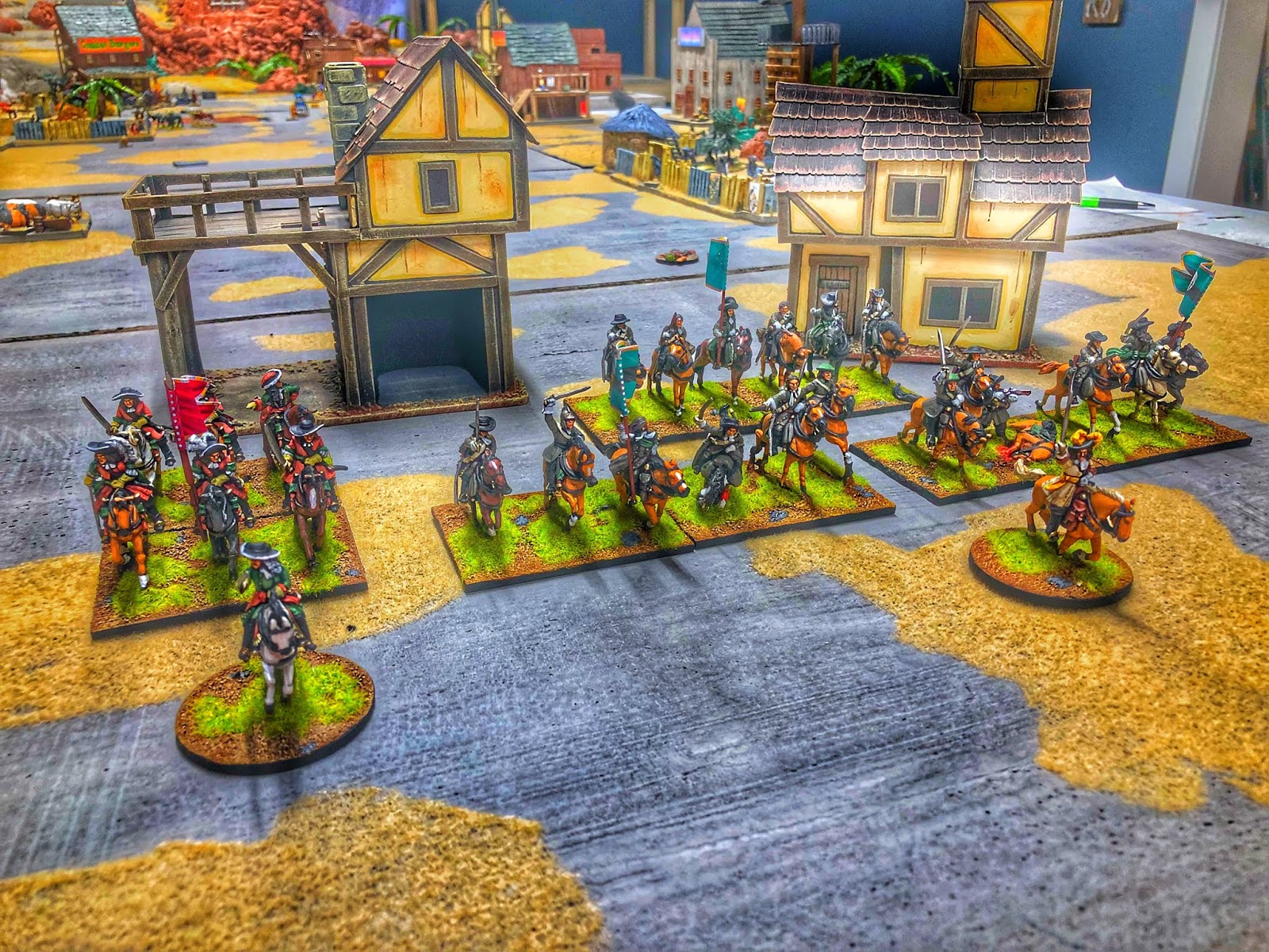 Thomas Grove - I've finally finished all my horse for Rawdon's army! Here they are arrayed for battle. No doubt just fleeing Dromore. LOL