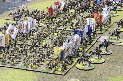 I have been intimately involved with the development as all of the figures used are Warfare Miniatures and there are roughly 2,500 plus about 400 horses here! I counted 'em, Jon painted 'em and Diane built the terrain!
