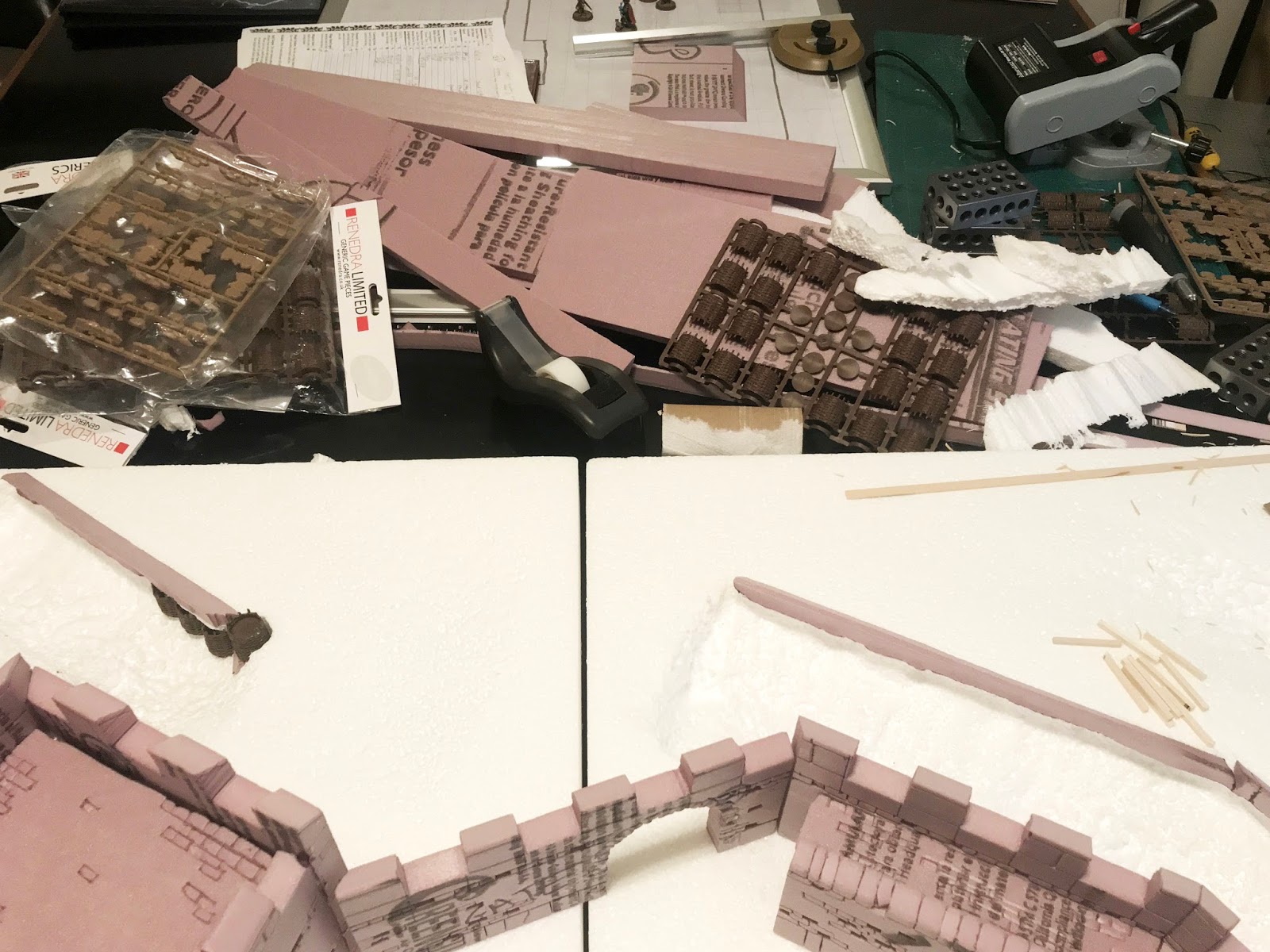 Clarence Harrison- I've made some progress on my project for the Guns of August show this summer. It is August 24th-26th and I am definitely attending, though I will only be there Saturday and Sunday. The plan is to run the game twice on Saturday and once on Sunday. I have more detail to do on the walls of Limerick, but some of that will be easier do once the models are attached to the tiles....