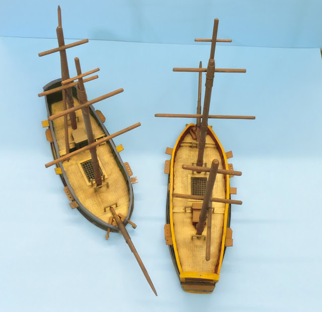 I wanted to get the maximum scenario use from the two converted small ships I purchase from Ainsty. I will deal with their masts and sails in a later post but I wanted to get all the serious hull building work completed first before frigging in the rigging....