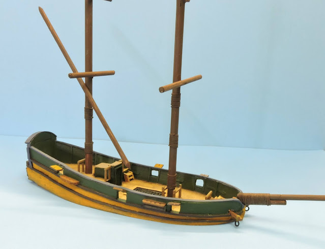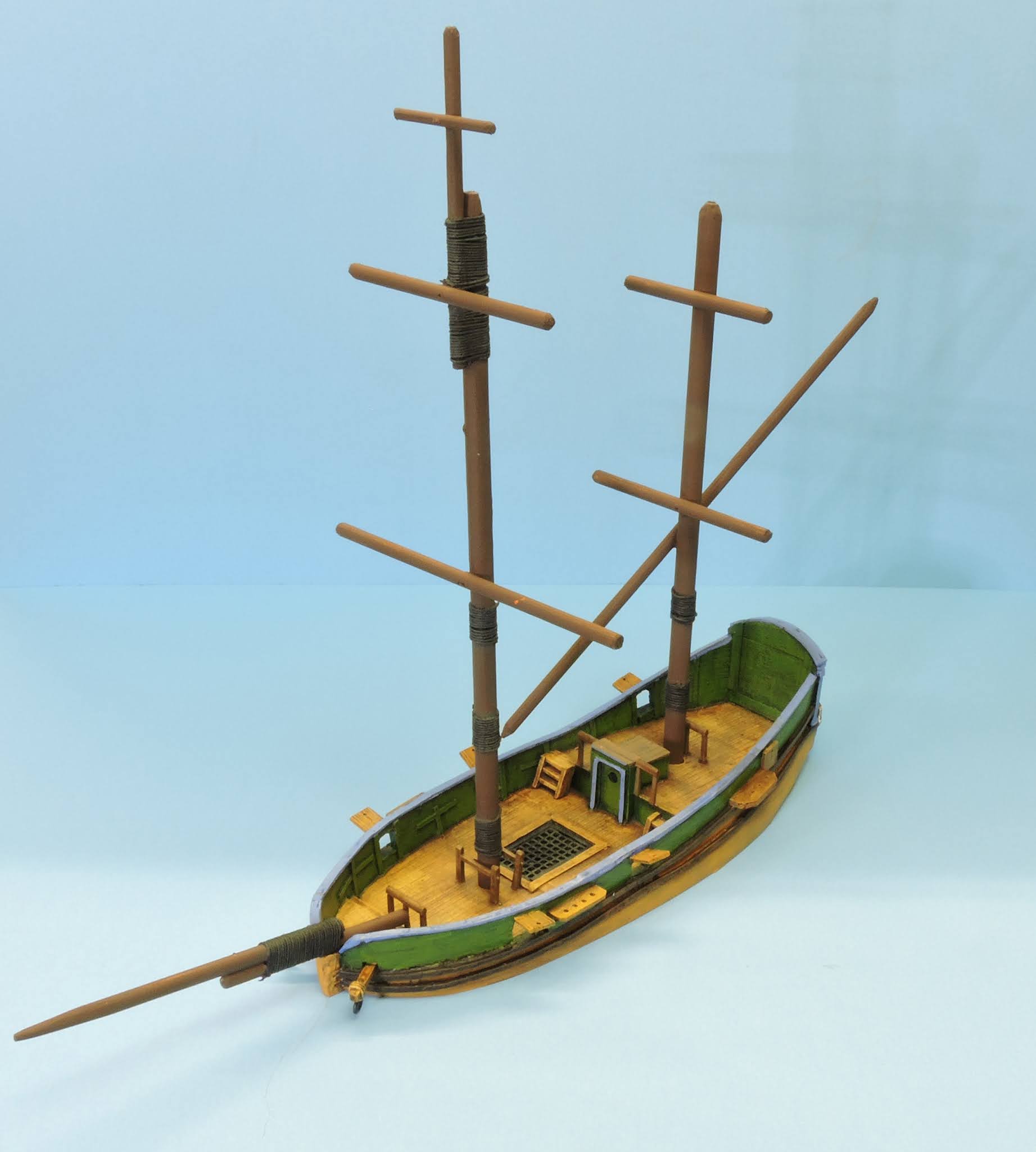 The first iteration of this converted Ainsty kit is as a 6 gun ketch Fox serving with the Royalist privateers sailing out of the Scilly Isles.