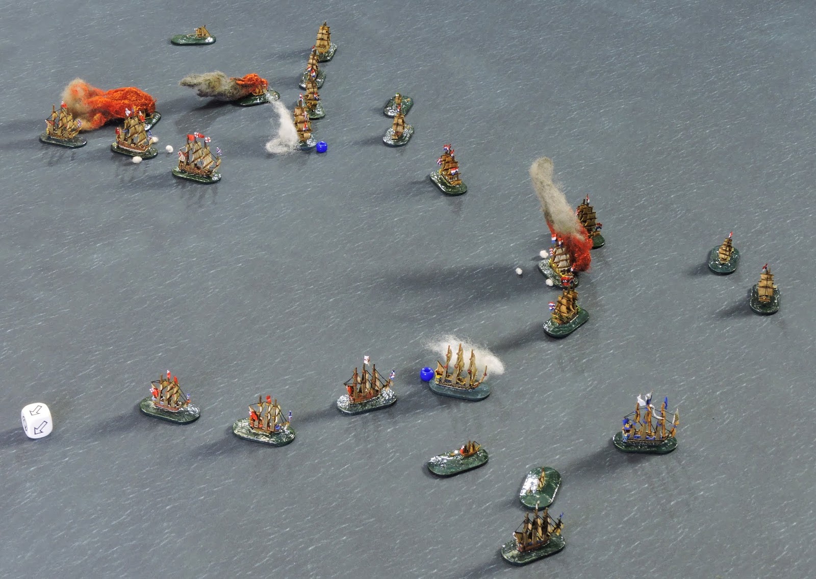 Firstly I learned that I enjoy naval wargaming as much as I did when aged nine. Then gaming involved hand-drawn and coloured plan views of Napoleonic men o'war which sailed round my blue bedroom carpet using a rule set borrowed from the public library. I have such fond memories of those...