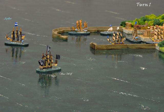 The walk through of my evolving naval rules for the 1640-1700 period continues where we pick the action up at the beginning of Turn 4 with the Allies once more winning the initiative which allows them to move first or, compel the French to move.