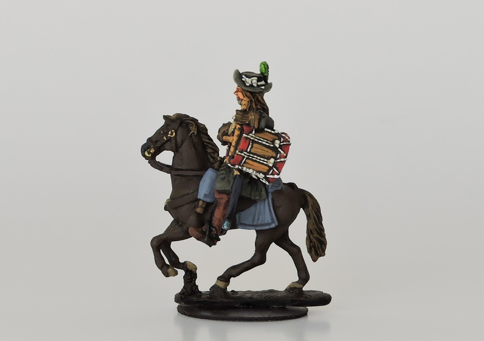 The first mounted dragoon command code features models in hats. Included are an officer, a guidon bearer and a drummer.