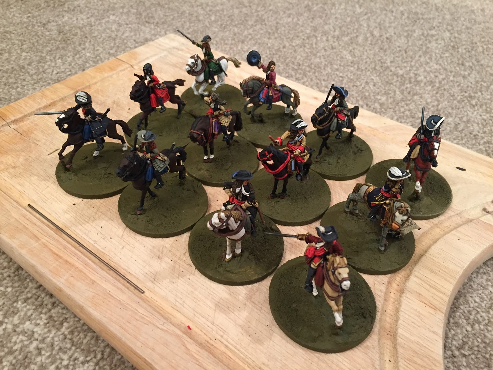 I decided to be very disciplined and complete them all together so having painted 12 (Clarence has already done the 13th - Richard Hamilton), I have gotten them all to the pre finishing stage. By that I mean the figures are painted but...