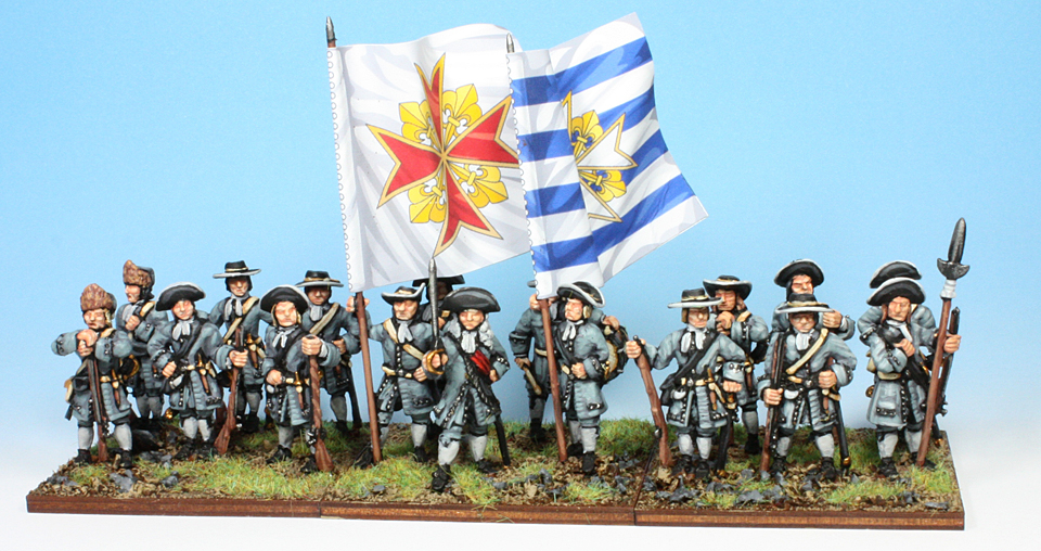 The possibilities with these figures are enormous. With fifteen marching /advancing musketeers in three sets of five, each with four arm variants we offer 60 variants on the musketeers.