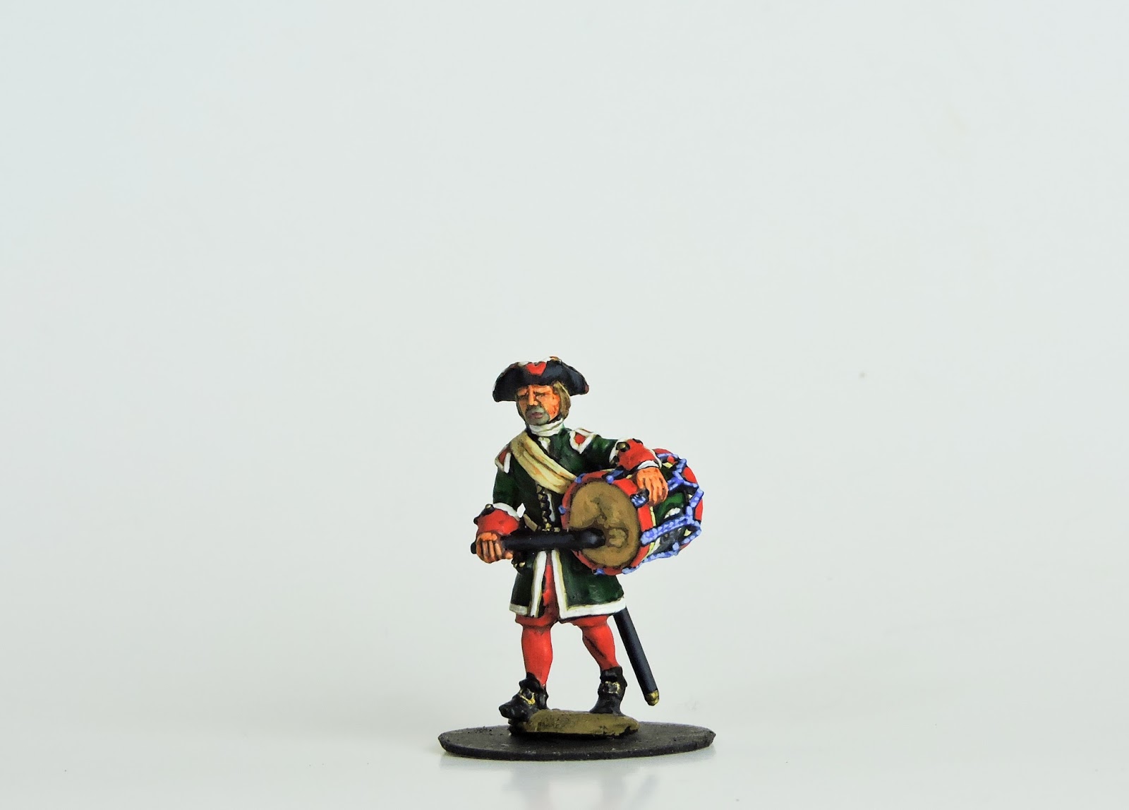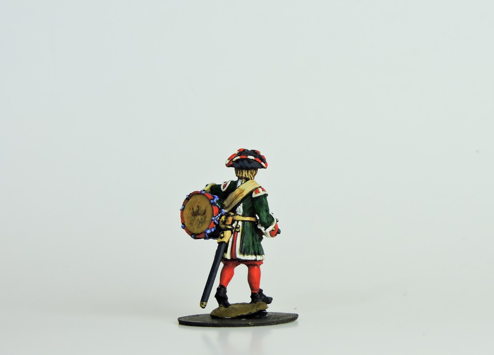 Russian Drummers' uniforms are relatively plain compared with even the Calvinist Swedes. This chap has the swallow's nest shoulder ends as frippery but...
