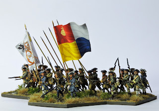I wanted to paint a battalion of Swedes who were not in the stereotypical blue faced yellow. I decided to imagine a later war look and a battalion formed from new drafts of recruits who had limited access to uniforms and equipment.