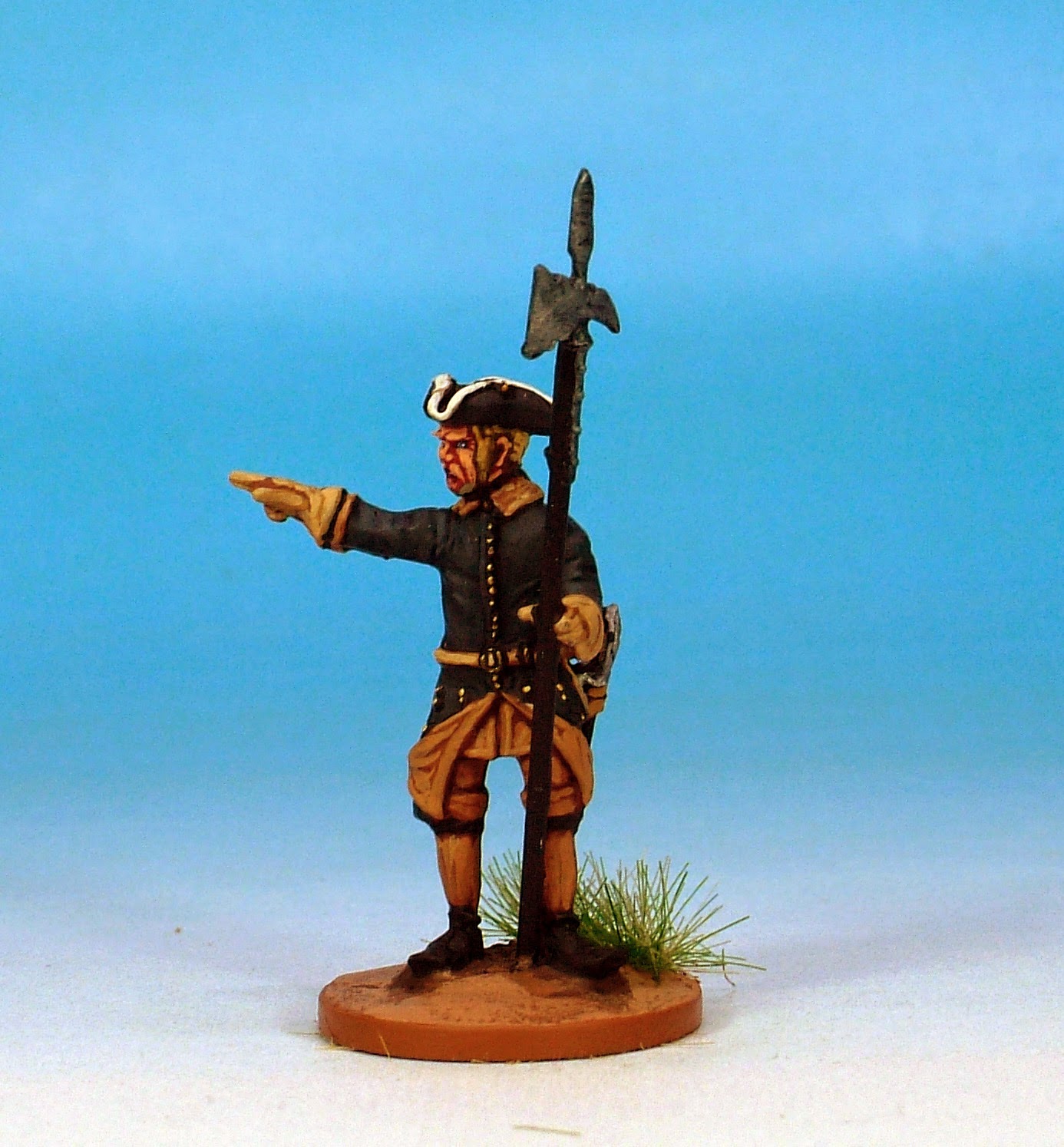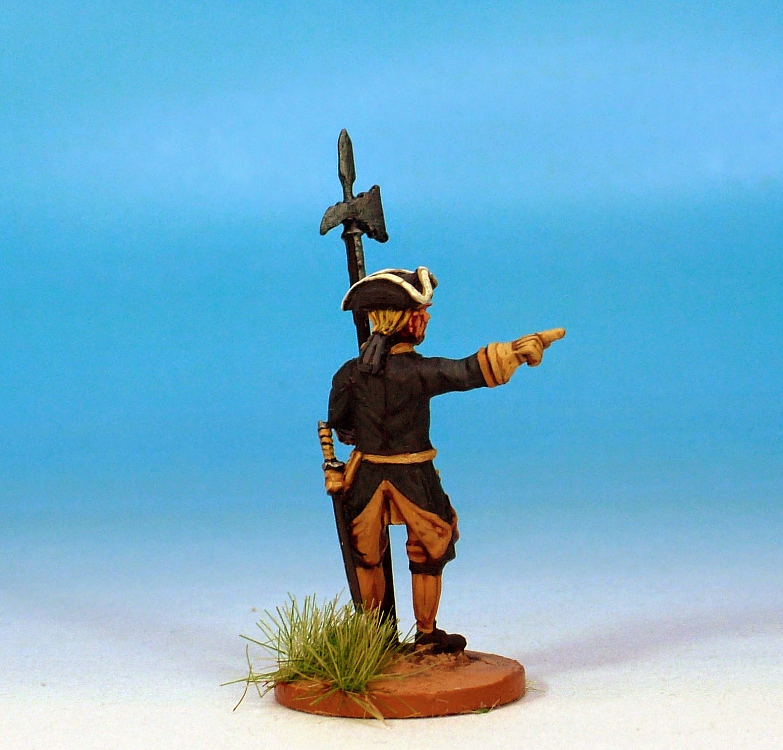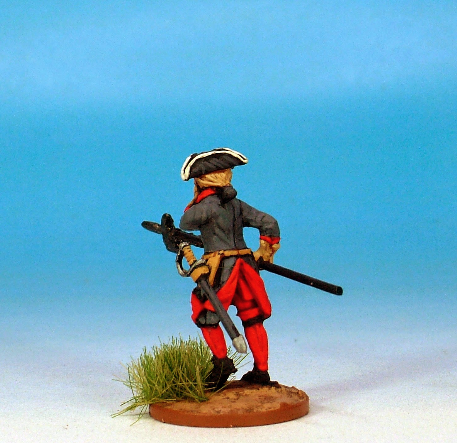 I love this code! This is the default uniform of Swedish troops of the period. Tricorned, hair-bagged with the addition of the calfskin campaign haversack. The movement that Clibinarium has managed to inject into these models is quite remarkable.