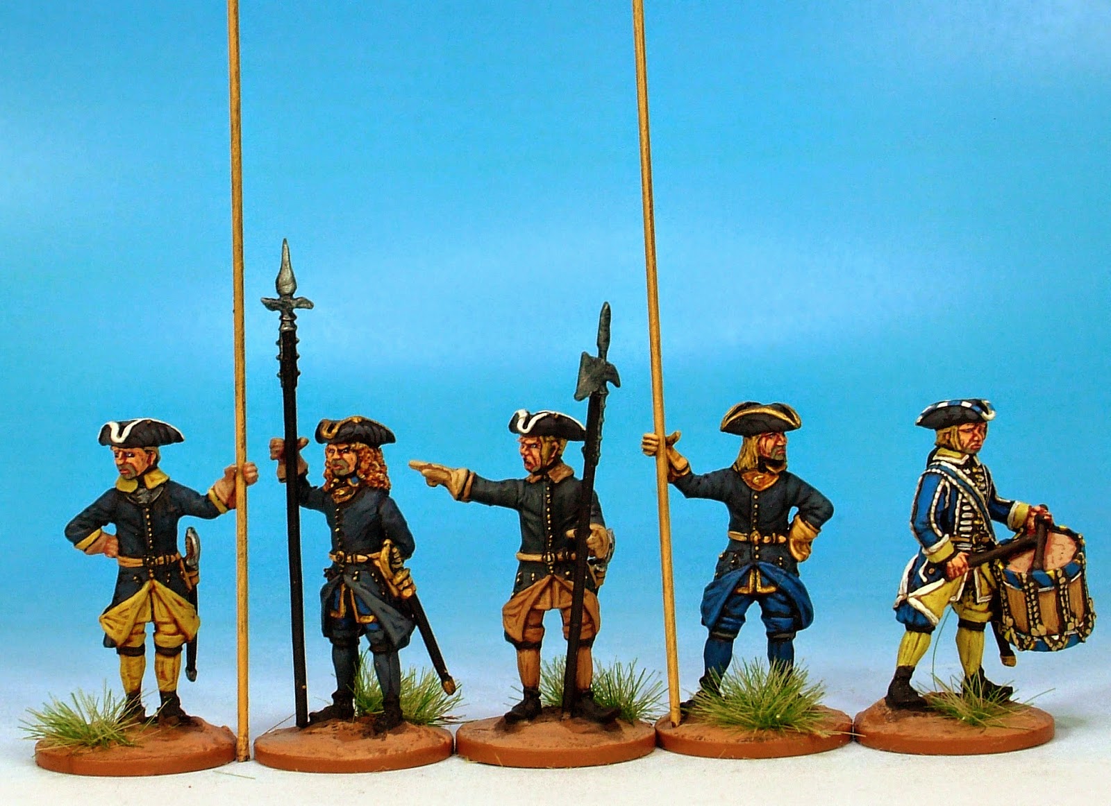 The Swedish disdain for frippery is evident not only in these sculpts but in the way I have chosen to paint them. I have used dark and sombre blue with the exception of the drummer who shows a little flash of colour in his uniform.