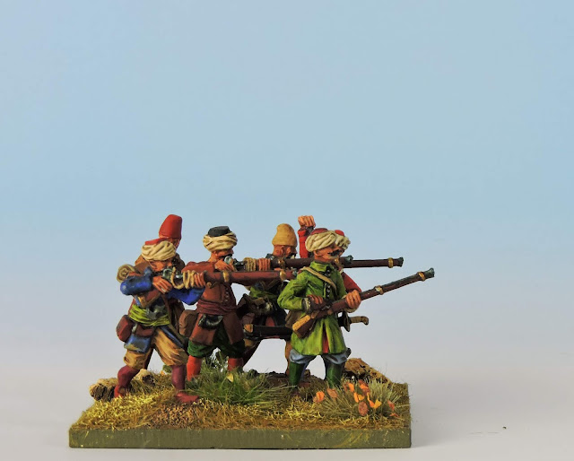 The possibilities with these figures are enormous. With fifteen marching /advancing musketeers in three sets of five, each with four arm variants we offer 60 variants on the musketeers.