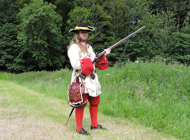 | A real life soldier! Musketeer Sean of a Jacobite regiment in Ireland circa 1689. Copyright B Hilton. |