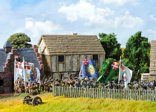| Danish troops take position to defend a town against the Swedes. |