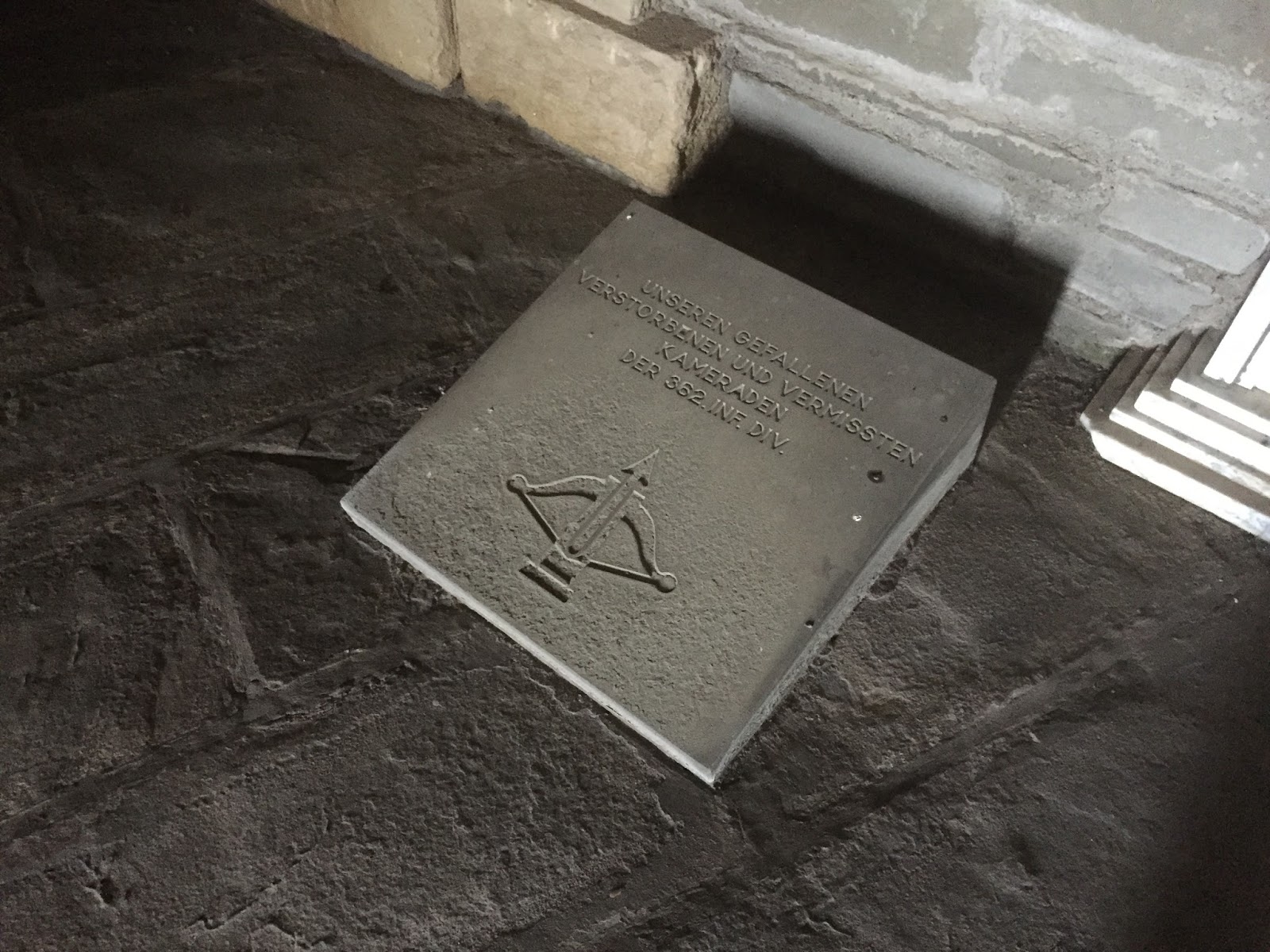At the summit is a dramatic stone monument beneath which 397 soldiers are buried. A vault with the divisional markers of participating formations is also part of the monument.