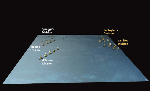 There are some big hitting admirals in this battle including De Ruyter and van Nes and of course the dashing cavalier turned General at Sea, Prince Ruprecht. Spragge and d'Estrees are both present as were many other famous officers of the day.