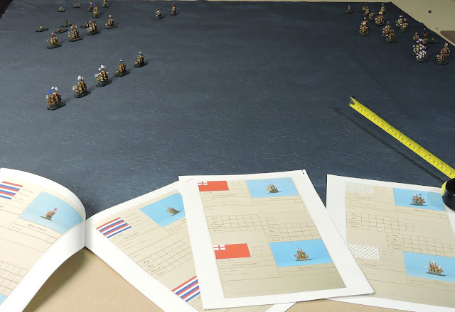 I chose not to follow the pattern of the historical action but to set the fleets up to create a balanced and unpredictable scenario with the heavier but less able Anglo-French fleet facing a lighter but more seasoned Dutch force. At the real battle the Dutch were outnumbered by about 3:2 and significantly outgunned. This game is a little more evenly balanced.