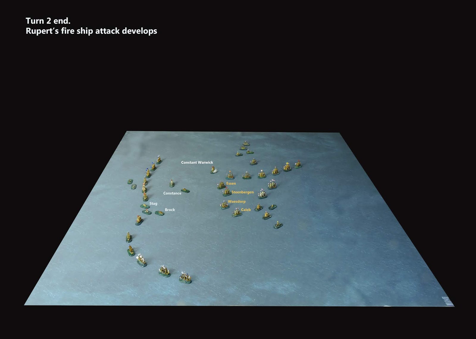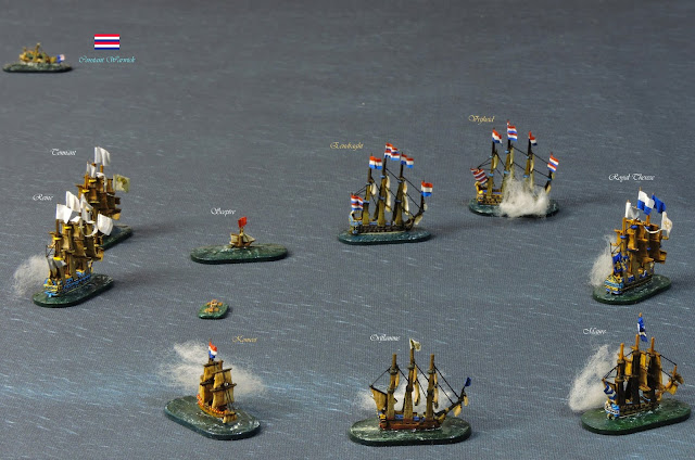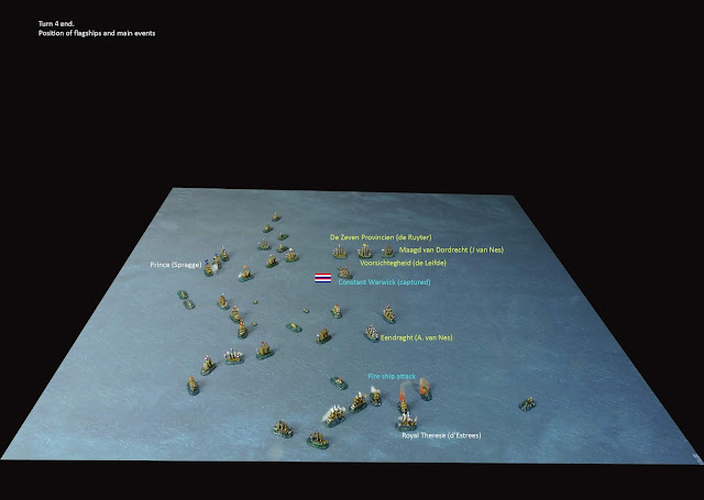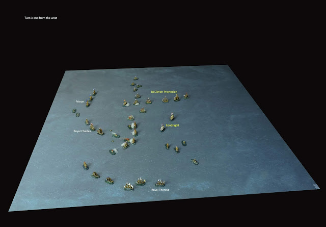 By the close of Turn 8 the Dutch had lost five fire ships, the Eendraght (72), Ridderschap (65) and Essen (50) captured and