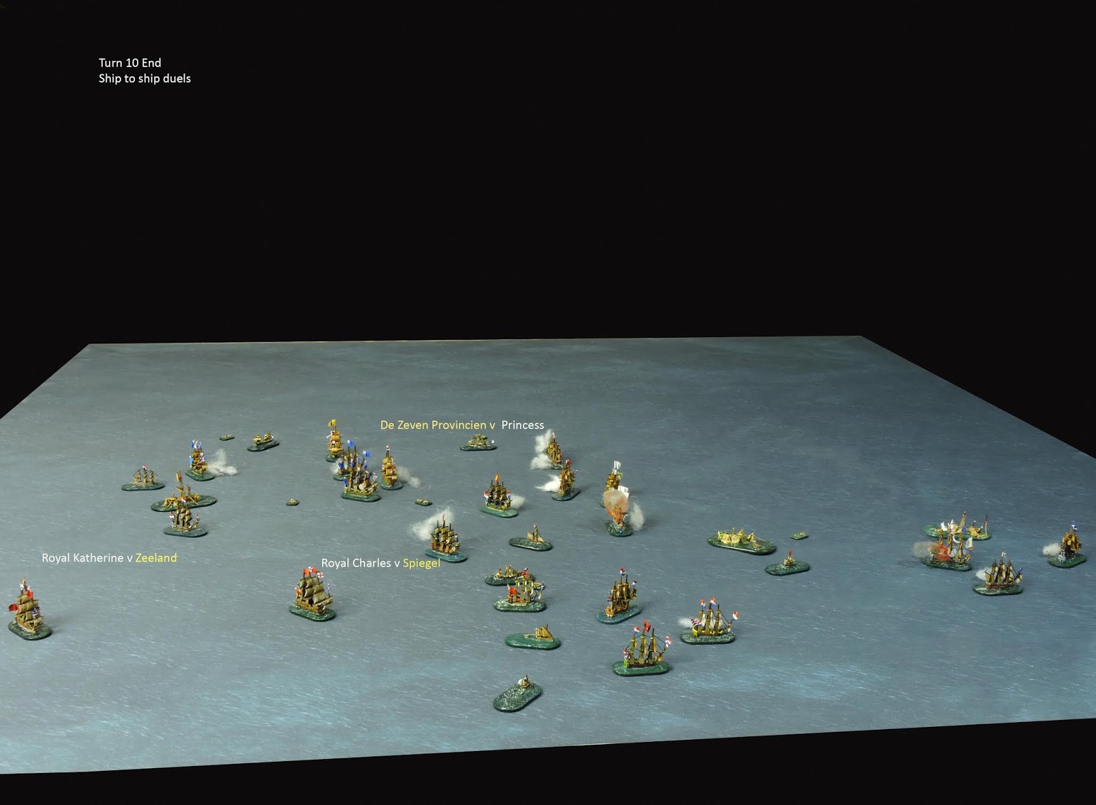 End of Turn 11. The carnage ends as the two flagships disengage centre left. |