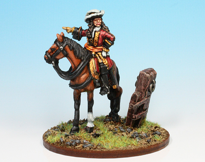 A couple more notes. I don't normally paint eyes on 28mm historical models. It's not because I can't - I just feel like the effect is more realistic leaving the darkest flesh tone. You can't see the detail of a person's eyes from a distance in real life, so they shouldn't stand out on the model from across the table! On the subject of eyes, you can't normally see the whites of a horse's eyes unless it is terrified. Certainly a rearing model or one careening into combat might count, but I normally just add a grey highlight to the black, especially with one standing politely and looking at whatever his master is pointing at...