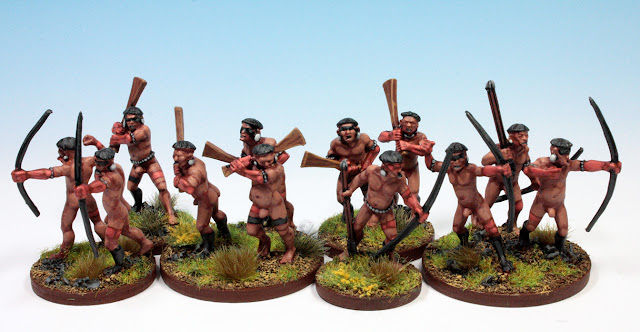 Next up are the Central American natives (painted more like South American tribesmen, but they will work well enough for me), again treated as Highlanders.