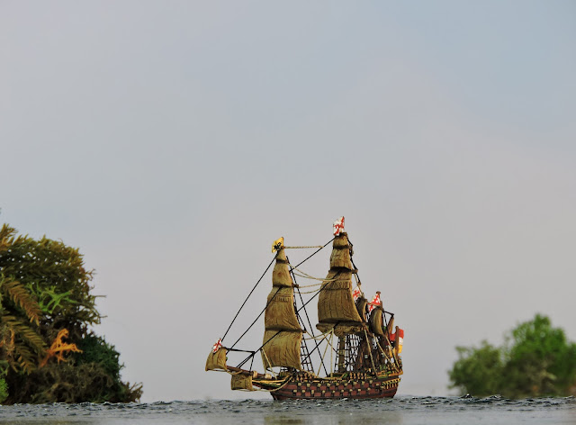 Royal Sovereign is almost unique. Another ship was designed to be a copy and very slightly larger the Sophie Amelia of Denmark. This is the benchmark 1st rate and served through till the late 17th century. She is a massive category 10 vessel in Mad for War. The Prince Royal also survived from her launch in the reign of James I(VI) through various incarnations till the time of the Anglo Dutch Wars. In this form with the 4 masts, she could be used as a large Spanish, Portuguese or Ottoman galleon, a TYW era Danish or Swedish great ship. She is a category 8 or possibly 9 vessel. The beak head is the long prow. These long beakhead ships were rebuilt in the Royal Navy after the 1640s but remained in service long after with other fleets.