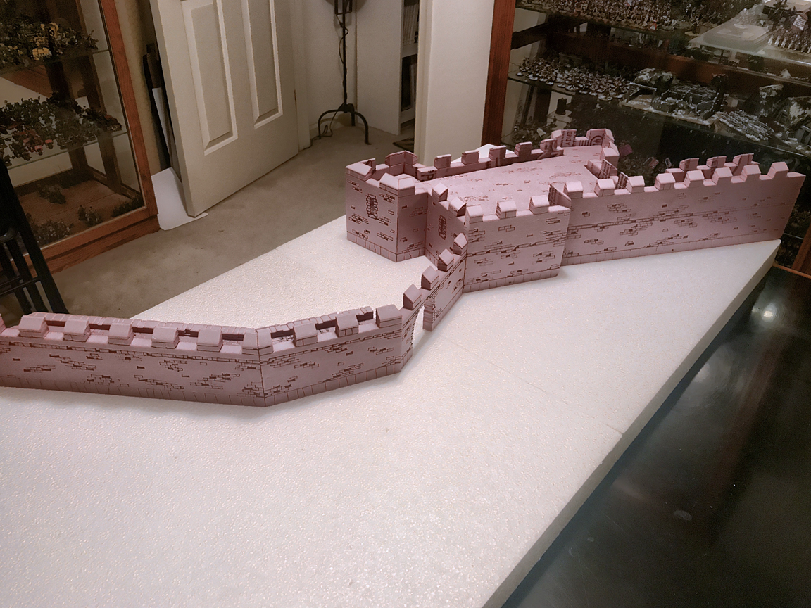 So here's where I am after the weekend. The angled wall with the walkway will be attached to one board and the citadel and it's adjoining wall be attached to the other. The central wall with the gate will remain loose so it can be replaced with a section of rubble. No, this wasn't deja vu - I explained this in the first post, but I thought it made more sense now that there are photos!