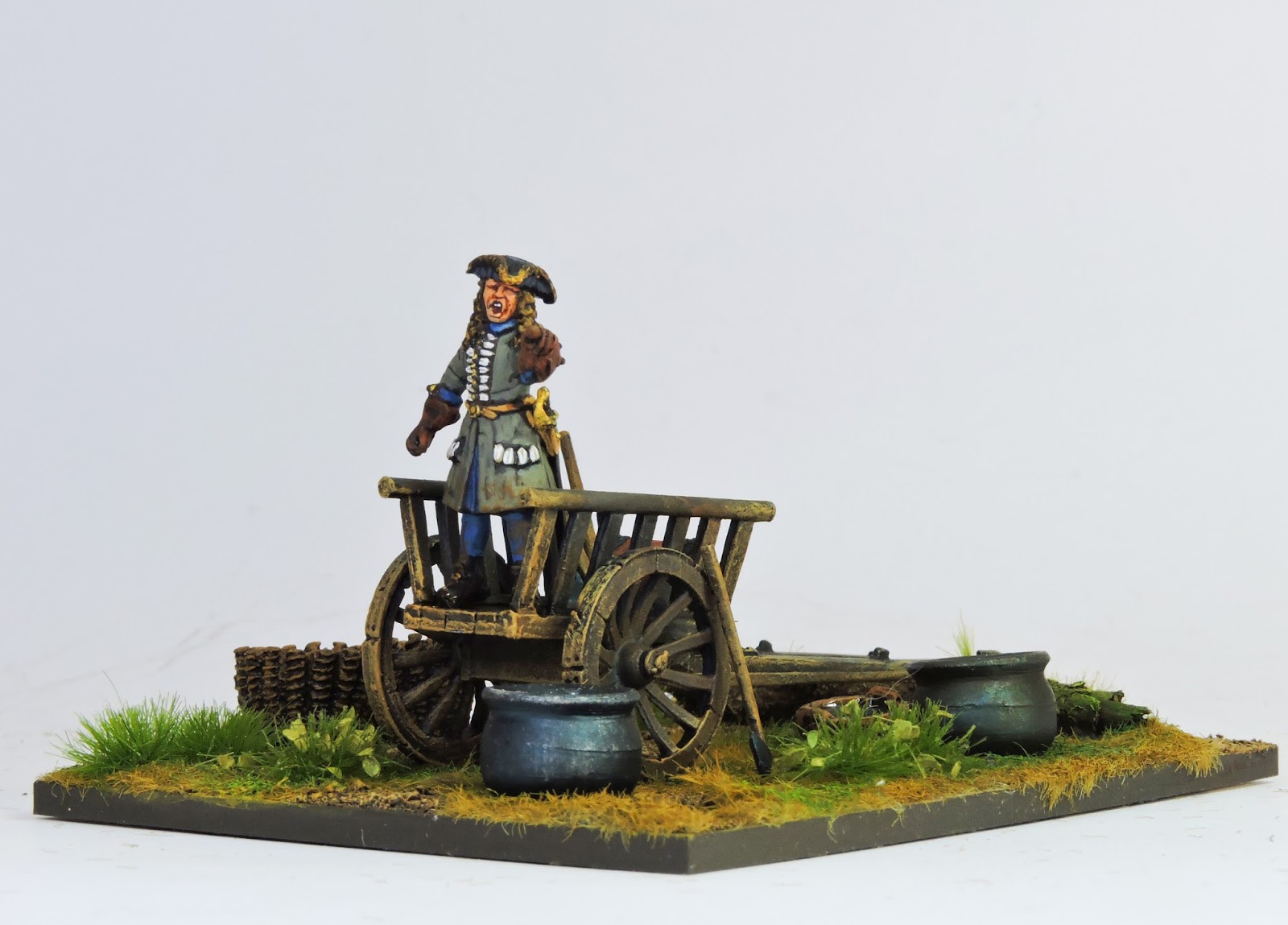 The arrival of the extensive Swedish artillerymen many of whom are open handed has spurred one of these creative phases and combined with items from Warfare Miniatures' siege equipment range and various wagons, I have created a variety of visually interesting pieces to dress specifically my Great Northern War tables but which could also be used more generally.