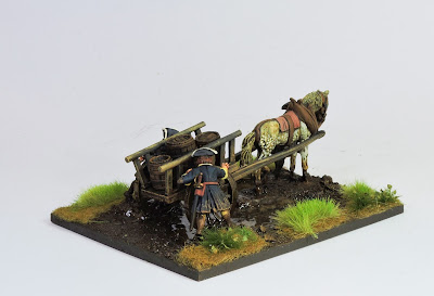 I saw the pushing yer wagon out of the mud opportunities early on and have now produced two iterations of this. On uses an old Foundry artillery horse which looks more like a pony based on the diminutive size of Foundry models pre-2010.