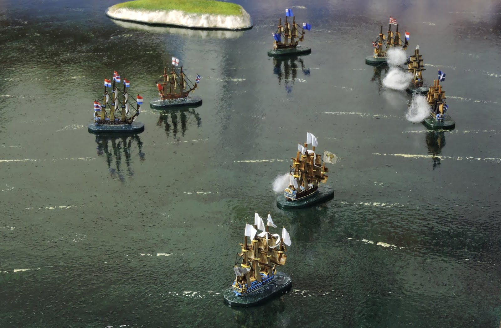 The more I played, the more I enjoyed, the more I tinkered. The new situations offered additional opportunity to develop flavour and nuance. I was turned off somewhat but what I can only describe as overly detailed and from a gaming perspective, unproductive discussions of naval or perhaps navel minutaie on various fora. I knew what I wanted from a game and it was a balance between sailing challenges and that old wargaming need - enjoyment and excitement oh, and a bit of narrative. The rivet counting quotient of some naval gamers seems to top the league in wargaming genre terms. I have no wish to fish in that particular pool.