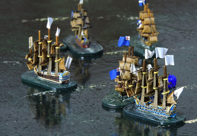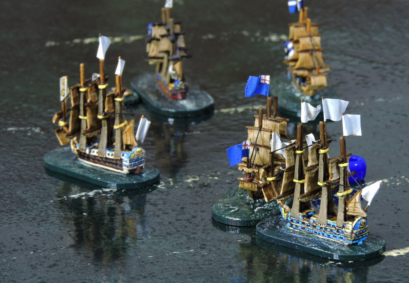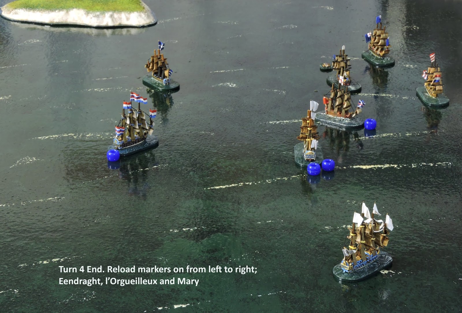 The walk through of my evolving naval rules for the 1640-1700 period continues where we pick the action up at the beginning of Turn 4 with the Allies once more winning the initiative which allows them to move first or, compel the French to move.