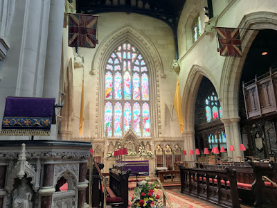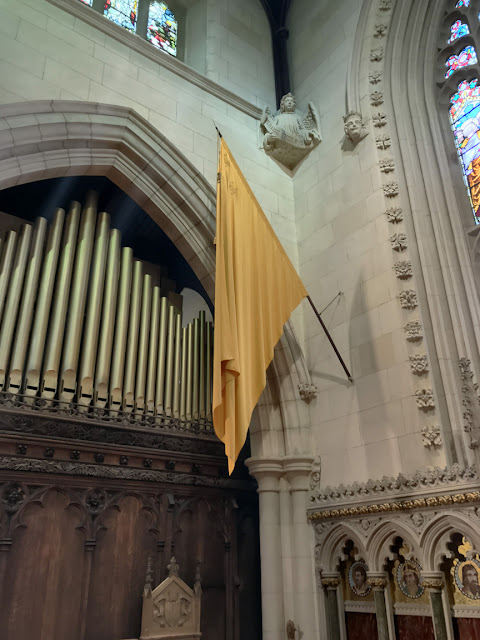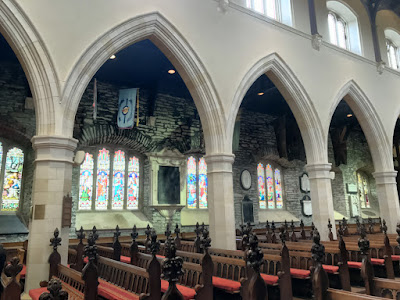 Two wonderful ladies at the entry greeted us in the role of typical tour guides. Upon finding out I was from America, she took us forward to view a 48-star United States flag stored under glass. It use to hang among the banners in the cathedral but had deteriorated to a point that it needed to be placed in storage. It had been presented by the US Navy in 1945 to commemorate the US Naval Base that was in Londonderry from 1942 to 1945. Somehow I managed to not get a picture of it.