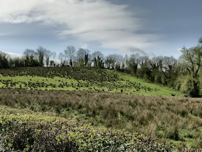 Winding our way south, we stopped on the side of the road at one of three sites believed to be the location of the Battle of Newtownbutler (Barry wrote a series of articles on this conflict). Basically the Jacobites formed up on a hill behind a bog and taunted the Enniskilleners to 'come over and fight'. Turns out the bog wasn't much of an impediment - either the ground was not as poor as believed or they knew a path through. Bottom line - the Jacobites were routed. In any case, this spot fits the description of the field very well. This photo possibly shows the hill where the Jacobites deployed...