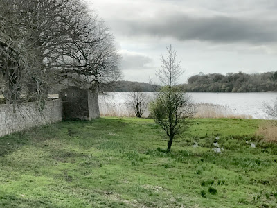 A bit farther south is a castle we know was involved in at least two actions during the fighting around Enniskillen - Castle Crom. There is a massive Victorian castle of the same name on the site, but the one we were interested in is a small ruin that lies to the south. Barry told Bob and I that Lord Galmoy tried to take the castle by bluff with a fake cannon made of tin. The Enniskilleners wouldn't surrender without a fight and apparently the Jacobites blew up their toy gun by trying to actually fire it!